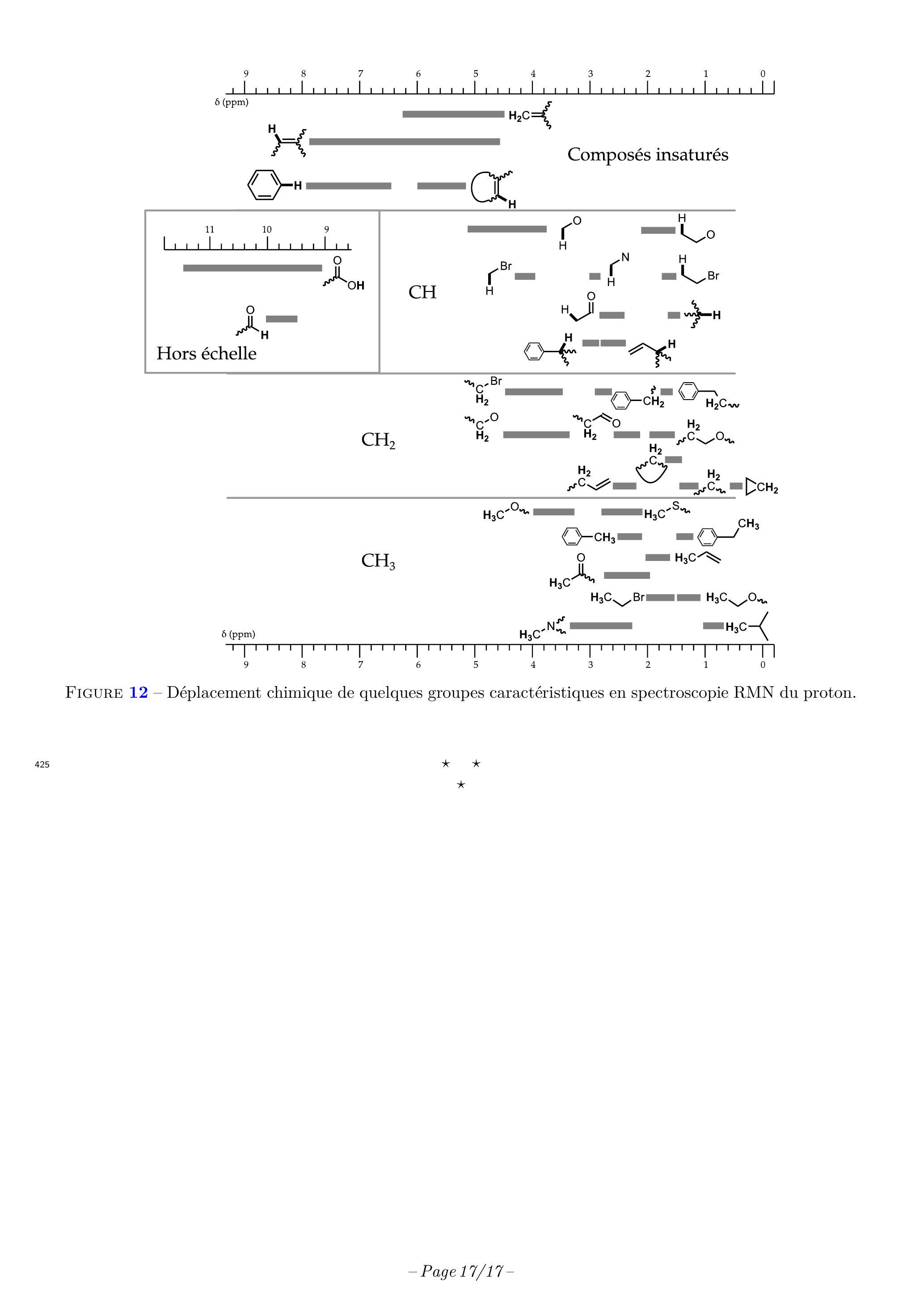 Figure 12 - Déplacement chimique de quelques groupes caractéristiques en spectroscopie RMN du proton.