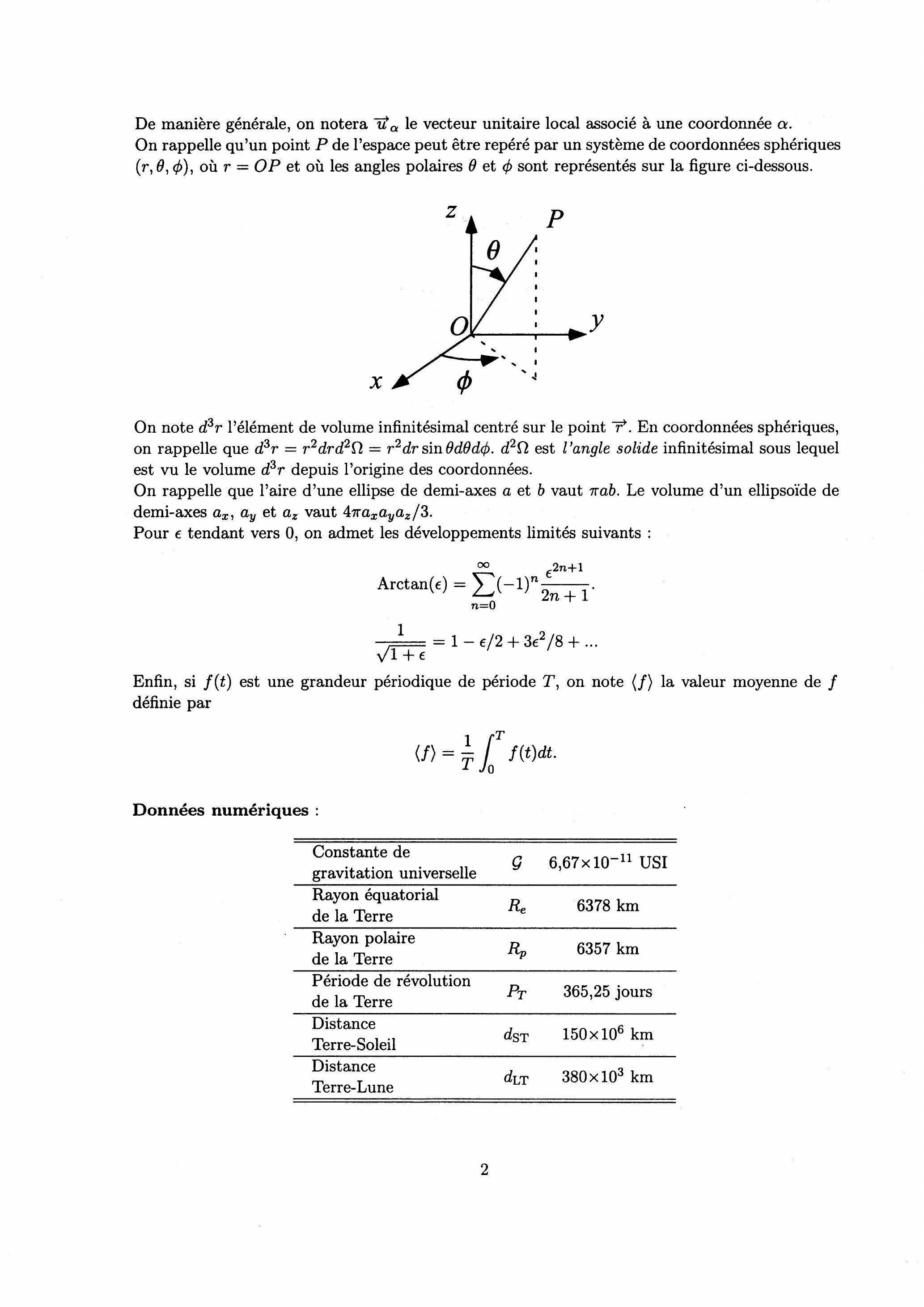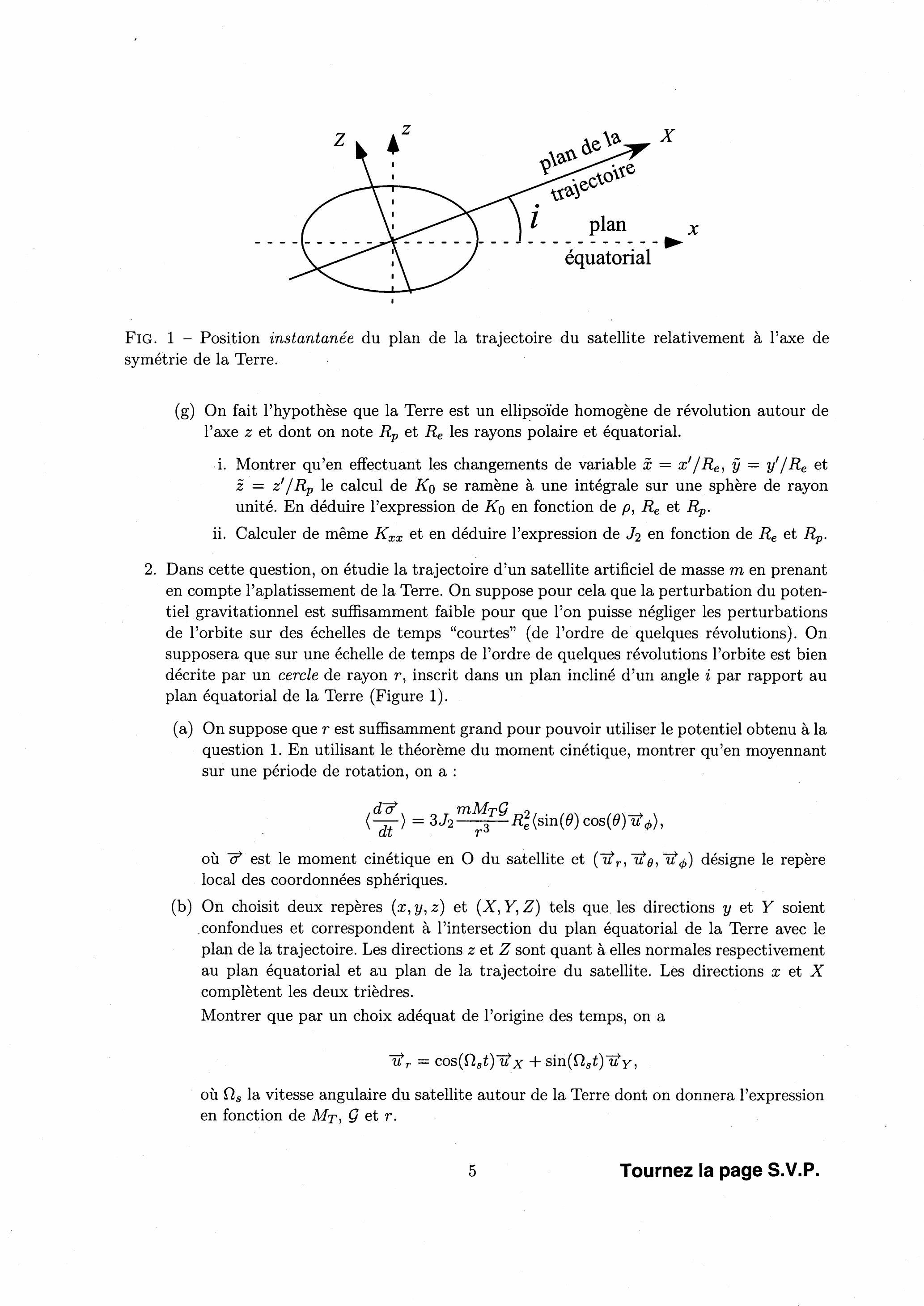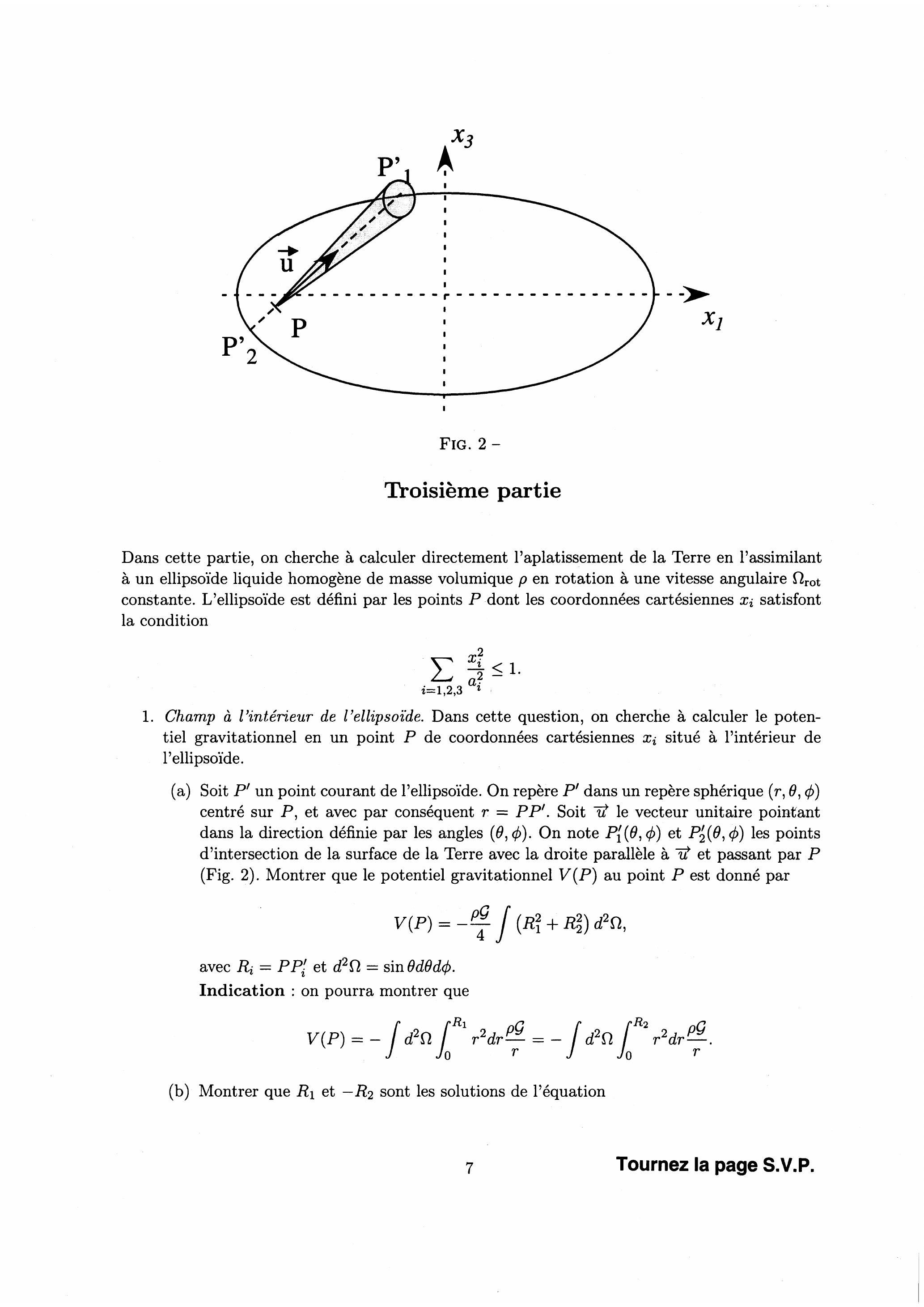 (g) On fait l'hypothèse que la Terre est un ellipsoïde homogène de révolution autour de l'axe et dont on note et les rayons polaire et équatorial.