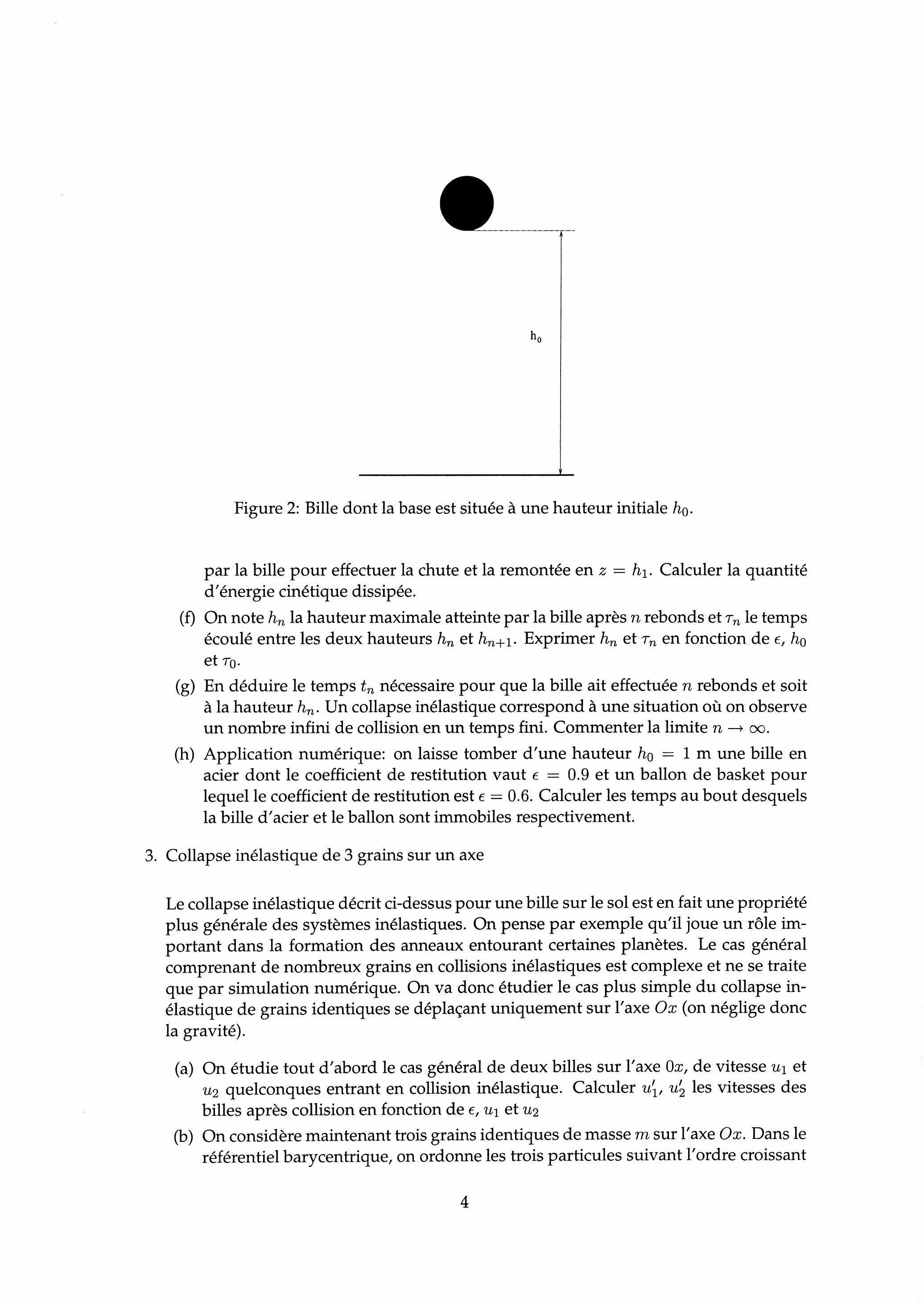 (g) En déduire le temps nécessaire pour que la bille ait effectuée rebonds et soit à la hauteur . Un collapse inélastique correspond à une situation où on observe un nombre infini de collision en un temps fini. Commenter la limite .