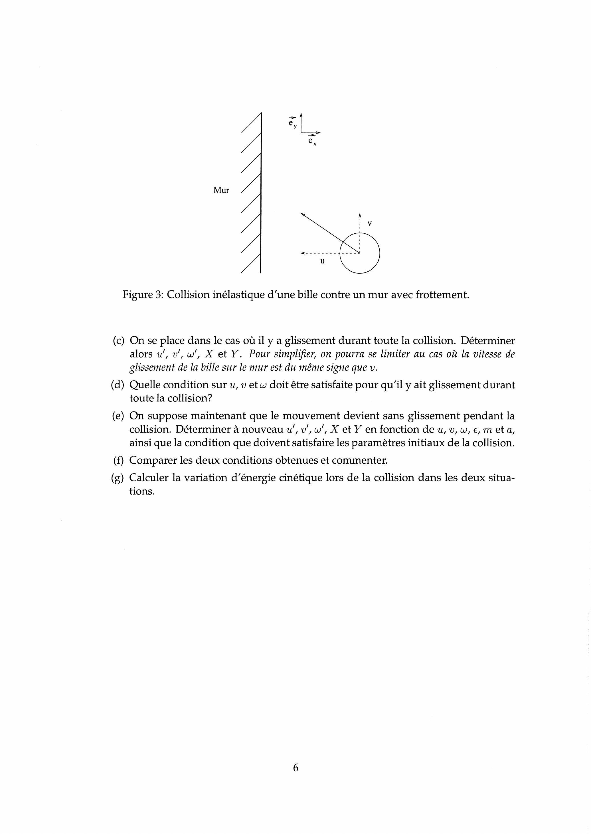 (c) On se place dans le cas où il y a glissement durant toute la collision. Déterminer alors et . Pour simplifier, on pourra se limiter au cas où la vitesse de glissement de la bille sur le mur est du même signe que .