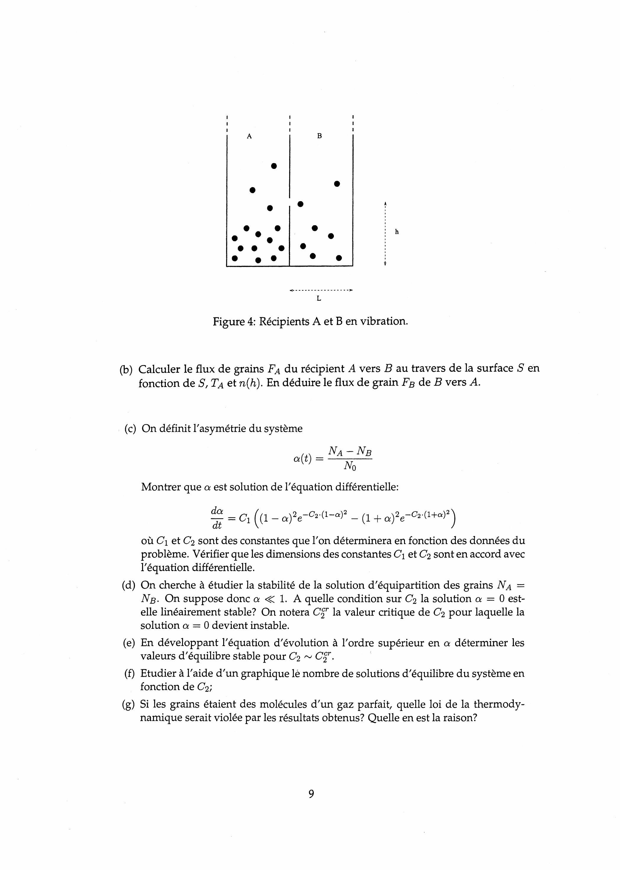 (d) On cherche à étudier la stabilité de la solution d'équipartition des grains . On suppose donc . A quelle condition sur la solution estelle linéairement stable? On notera la valeur critique de pour laquelle la solution devient instable.