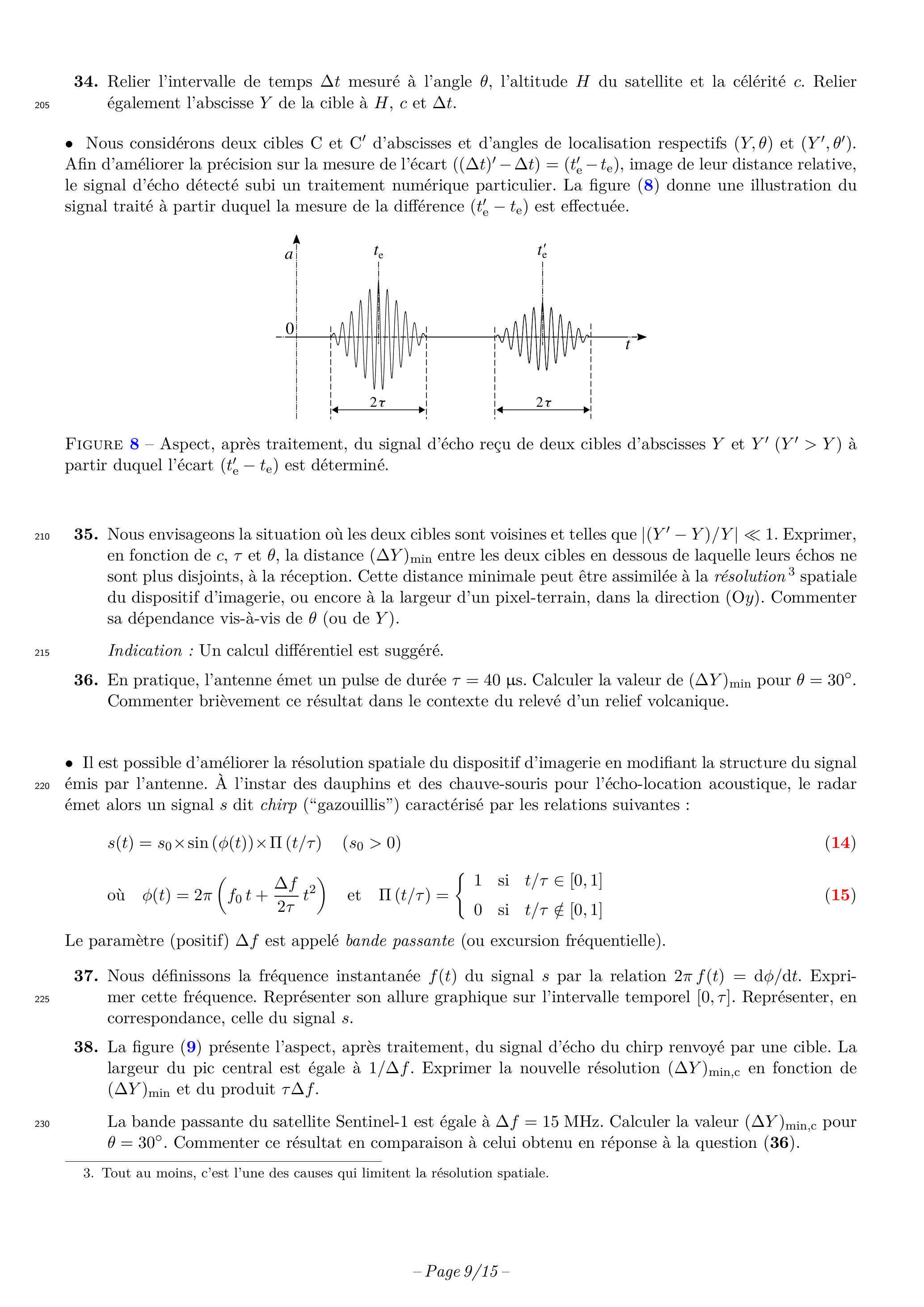 36. En pratique, l'antenne émet un pulse de durée s. Calculer la valeur de pour . Commenter brièvement ce résultat dans le contexte du relevé d'un relief volcanique.