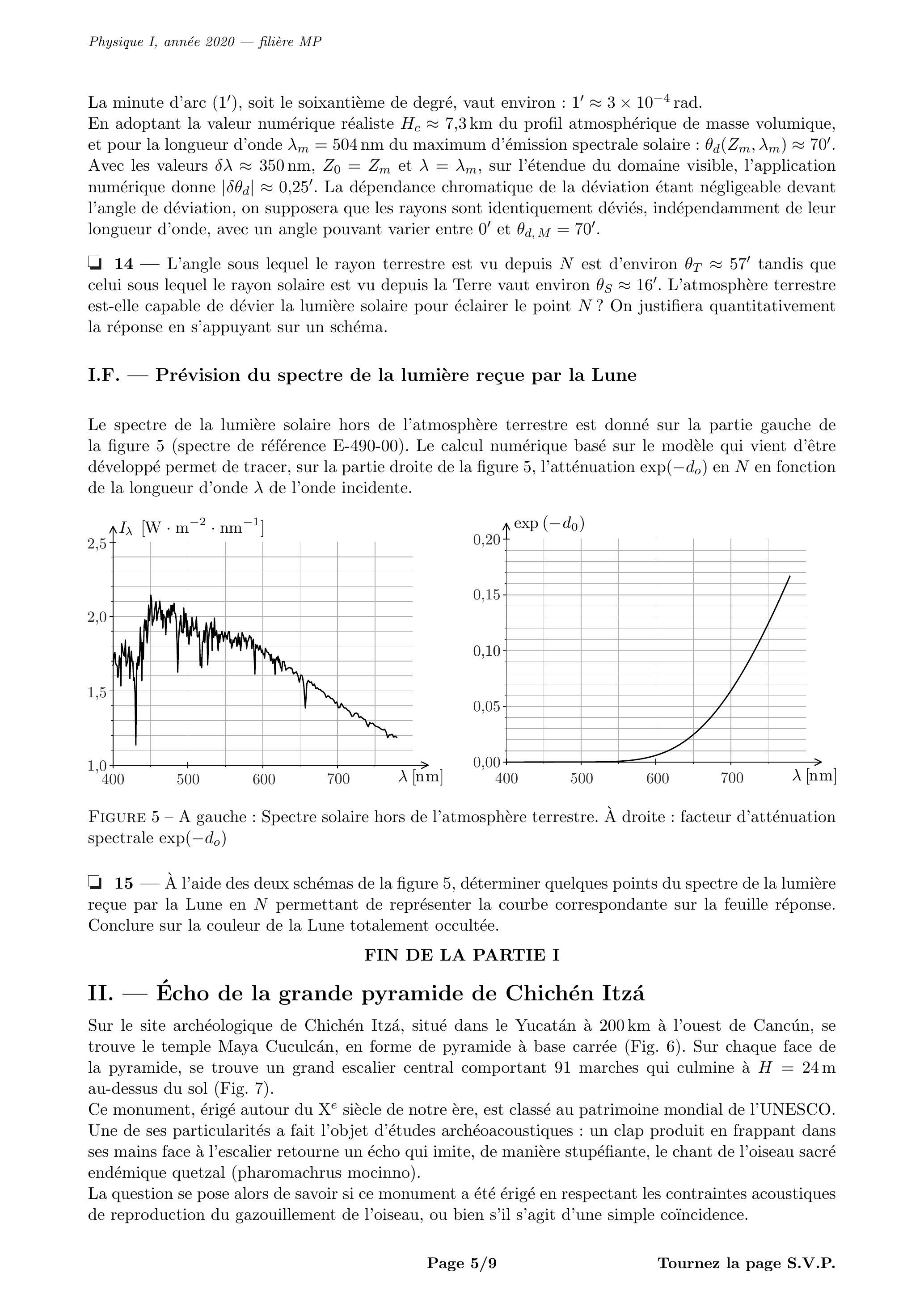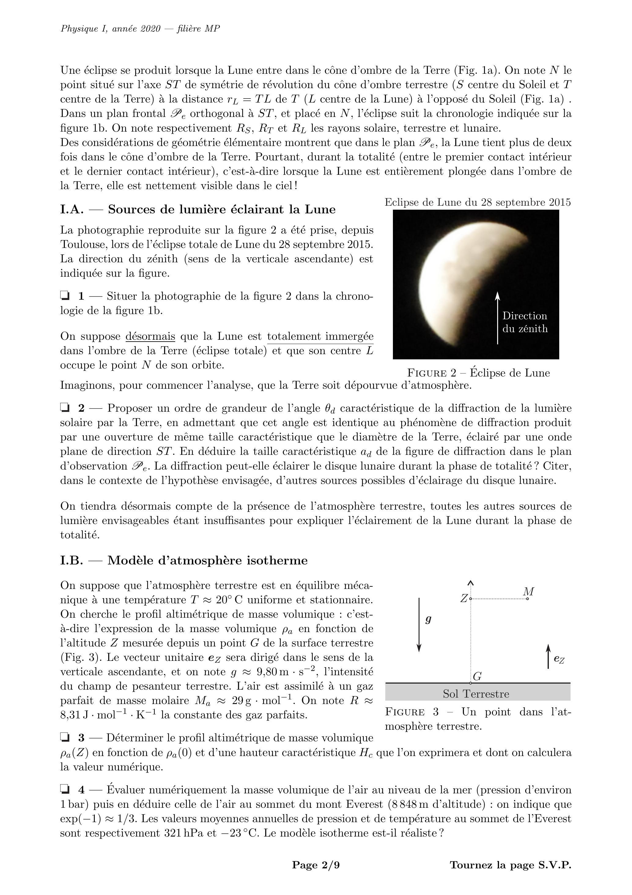14 - L'angle sous lequel le rayon terrestre est vu depuis est d'environ tandis que celui sous lequel le rayon solaire est vu depuis la Terre vaut environ . L'atmosphère terrestre est-elle capable de dévier la lumière solaire pour éclairer le point ? On justifiera quantitativement la réponse en s'appuyant sur un schéma.