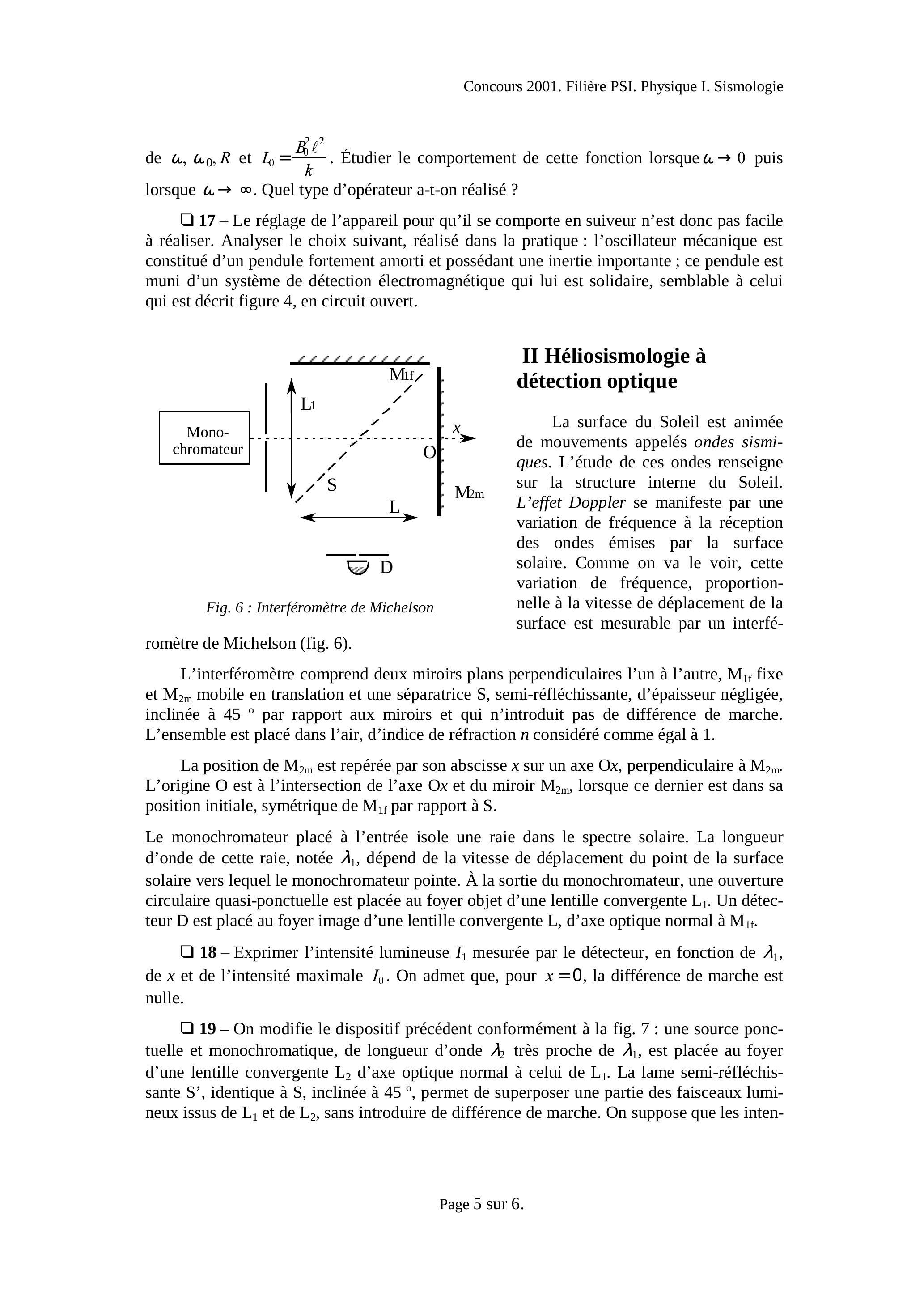 La surface du Soleil est animée de mouvements appelés ondes sismiques. L'étude de ces ondes renseigne sur la structure interne du Soleil. L'effet Doppler se manifeste par une variation de fréquence à la réception des ondes émises par la surface solaire. Comme on va le voir, cette variation de fréquence, proportionnelle à la vitesse de déplacement de la surface est mesurable par un interféromètre de Michelson (fig. 6).