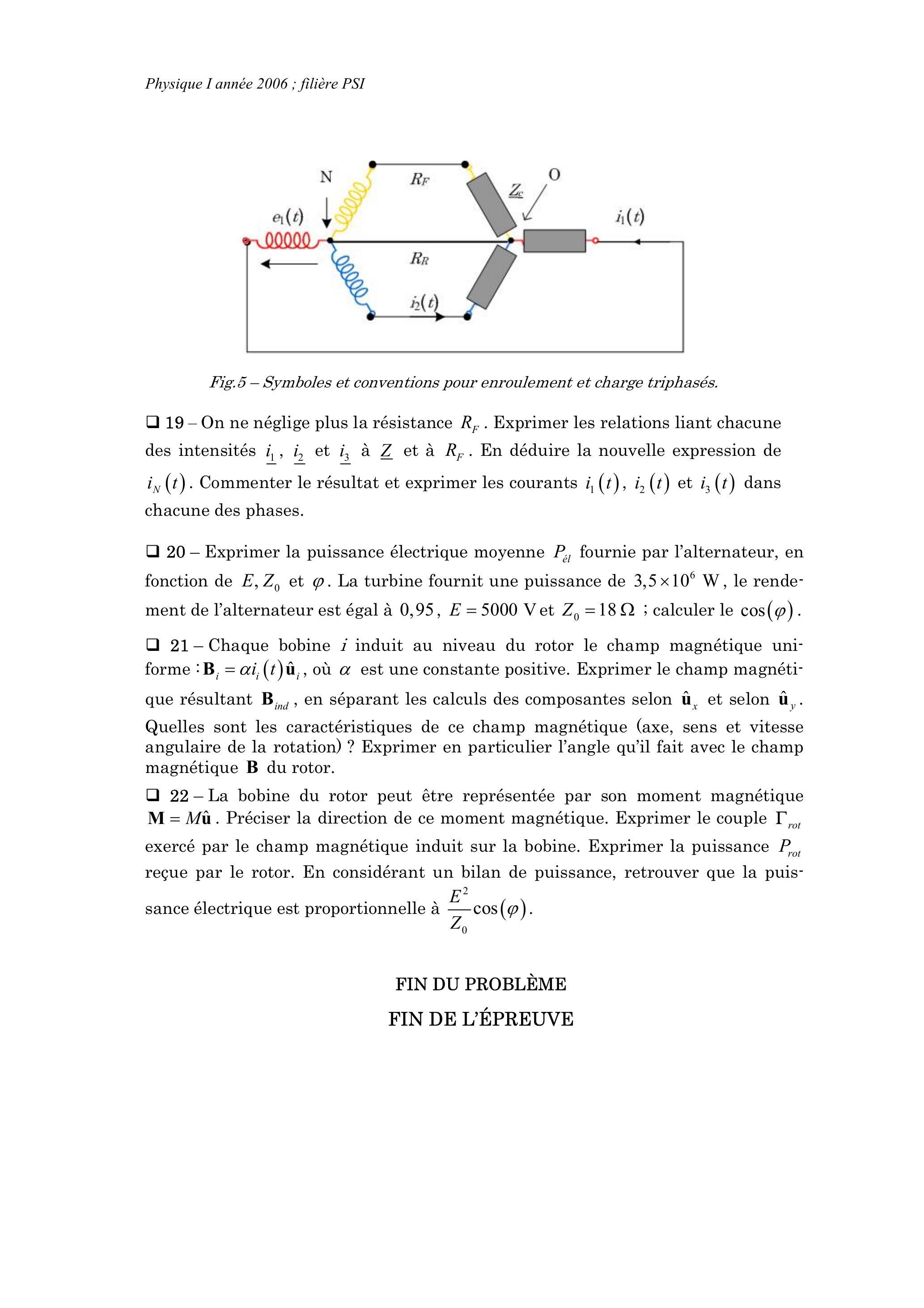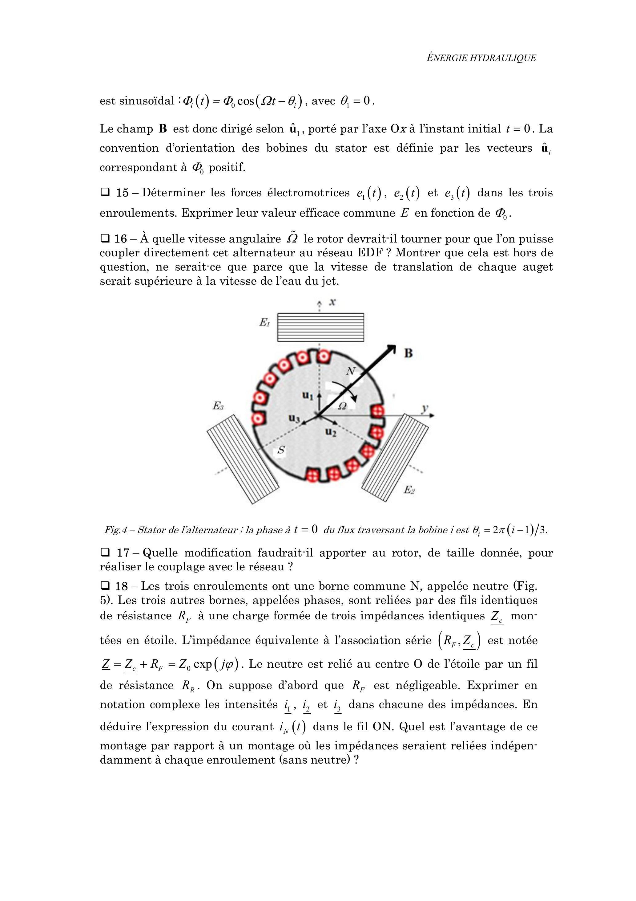 • 20 - Exprimer la puissance électrique moyenne fournie par l'alternateur, en fonction de et . La turbine fournit une puissance de , le rendement de l'alternateur est égal à et ; calculer le .