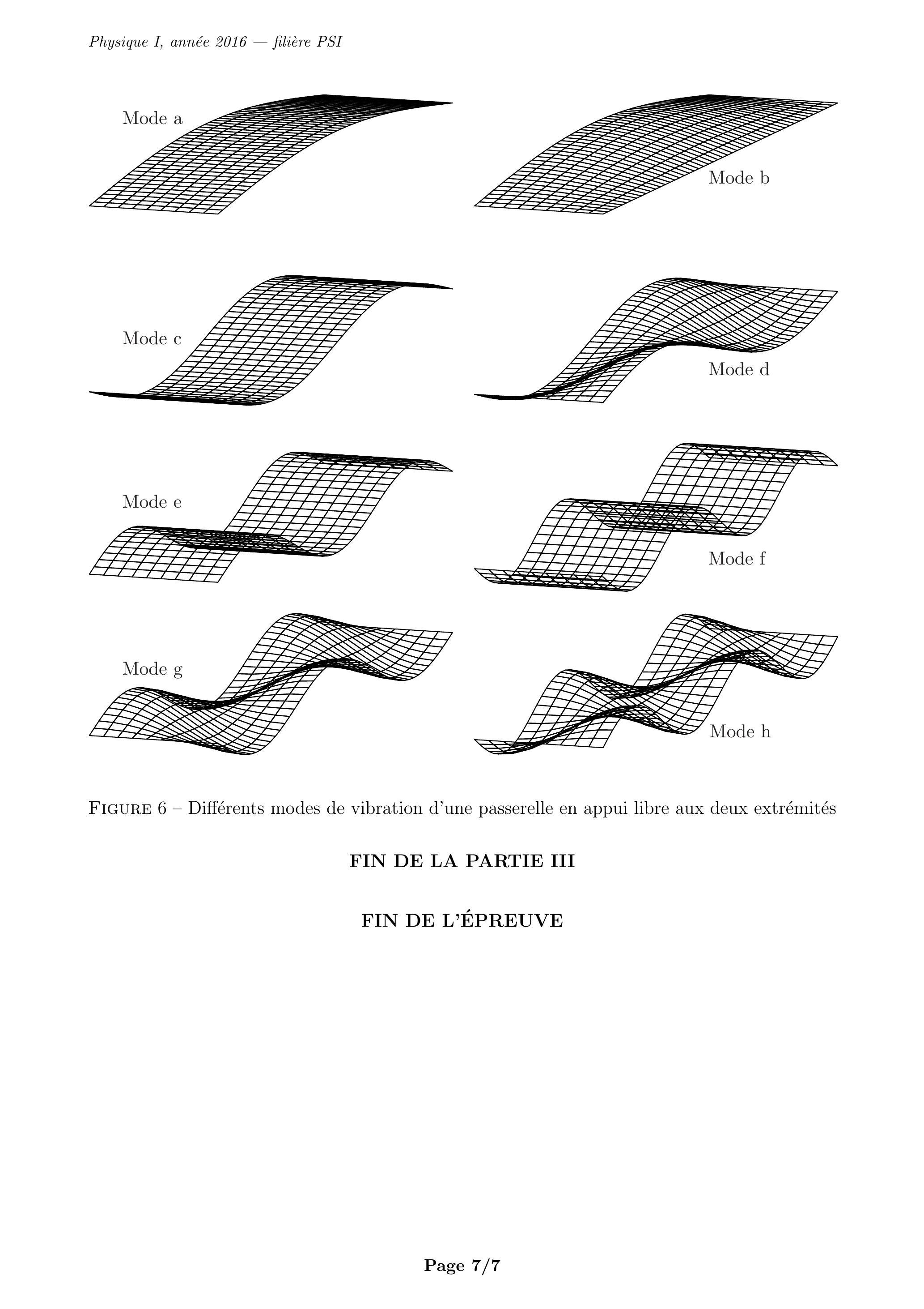 • 18 - Différents modes de vibrations d'une passerelle ont été représentés sur la figure 6, quels sont ceux correspondants à l'étude proposée dans cette section? Identifier de façon argumentée pour chacun de ces modes, l'entier le caractérisant.