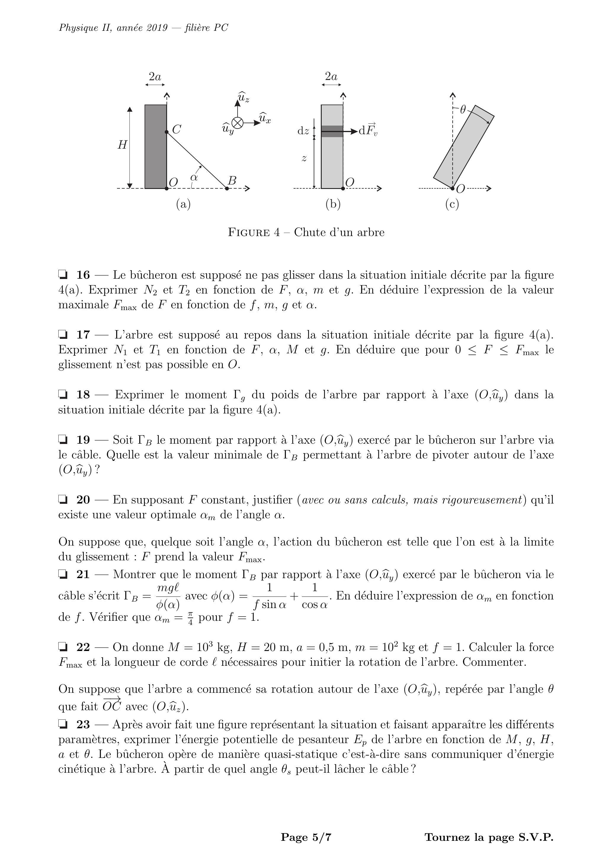 16 - Le bûcheron est supposé ne pas glisser dans la situation initiale décrite par la figure 4(a). Exprimer et en fonction de et . En déduire l'expression de la valeur maximale de en fonction de et .