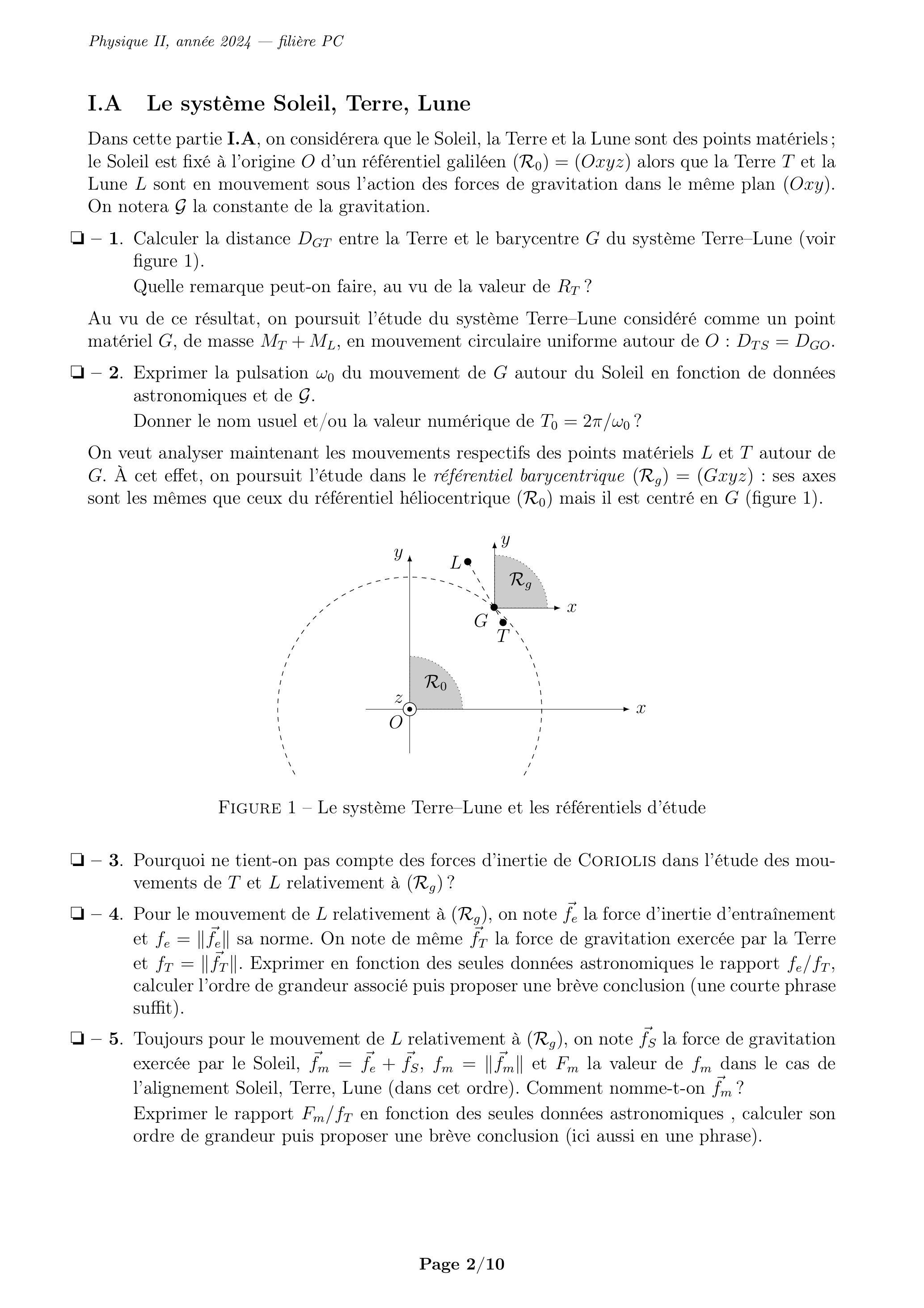 Cette partie se décompose en deux sous-parties indépendantes I.A et I.B, elle décrit sommairement quelques unes des propriétés mécaniques du système formé du Soleil, de la Terre et de la Lune. On donne les grandeurs astronomiques, toutes supposées constantes:
