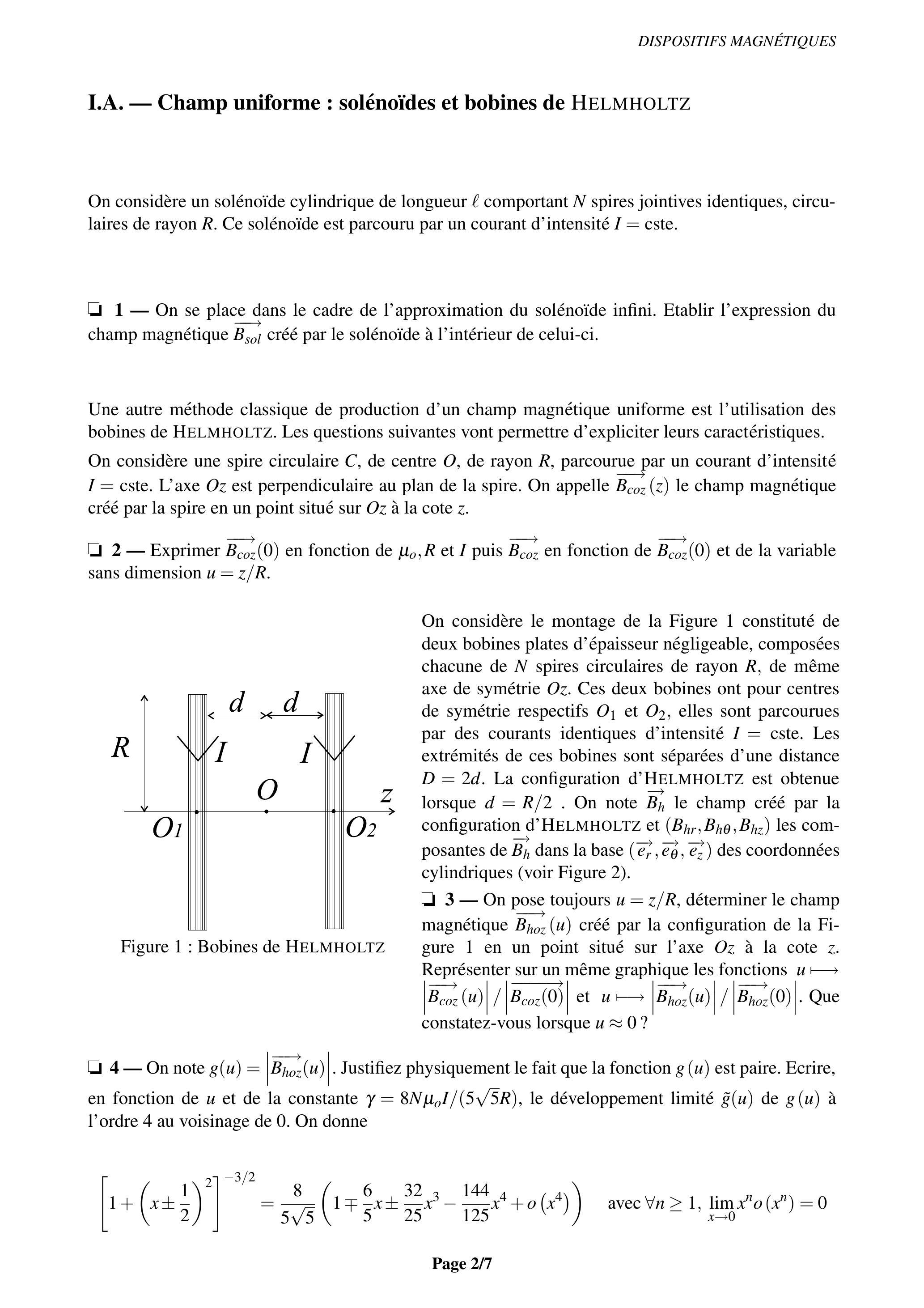 I.A. - Champ uniforme : solénoïdes et bobines de Helmholtz
