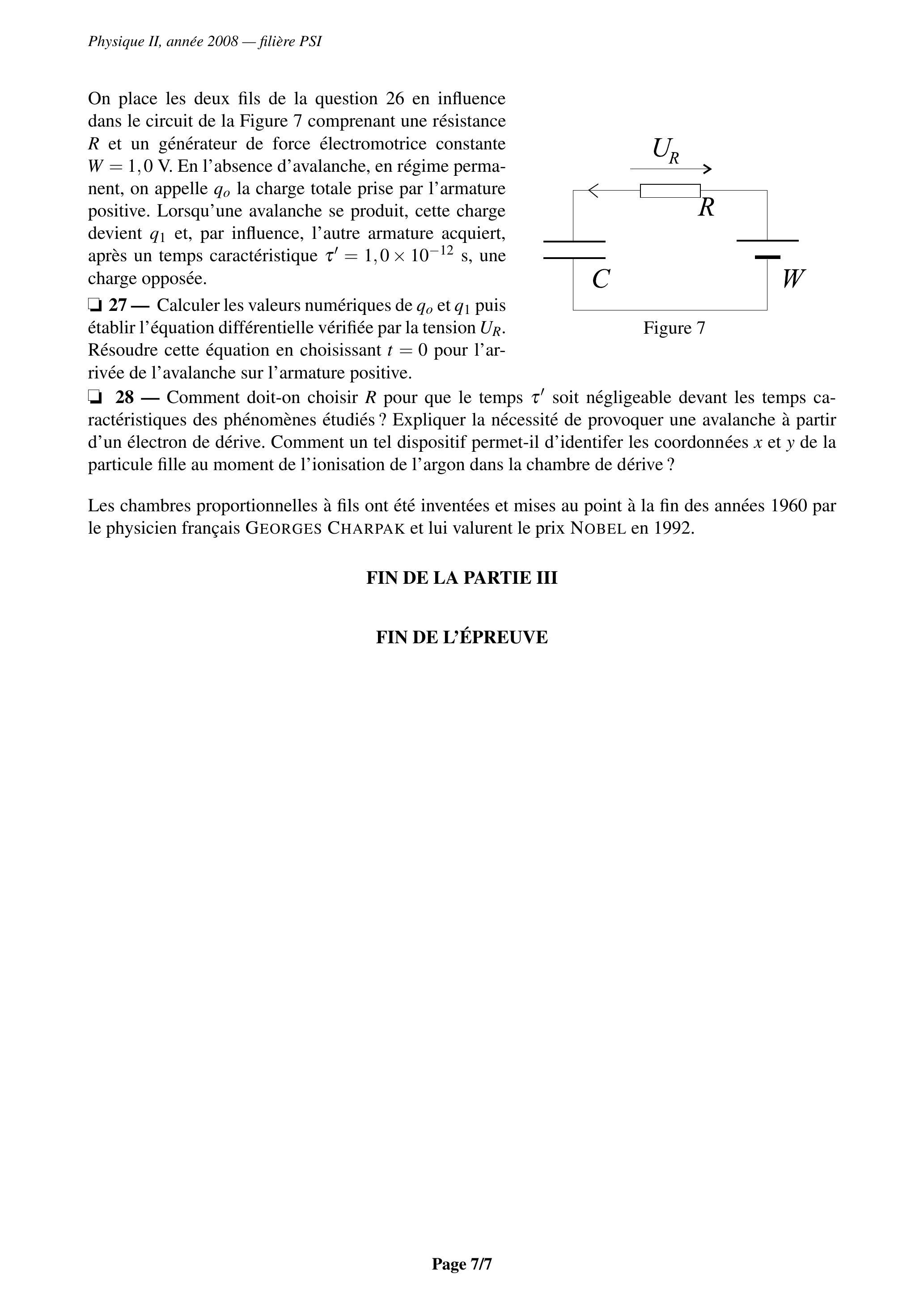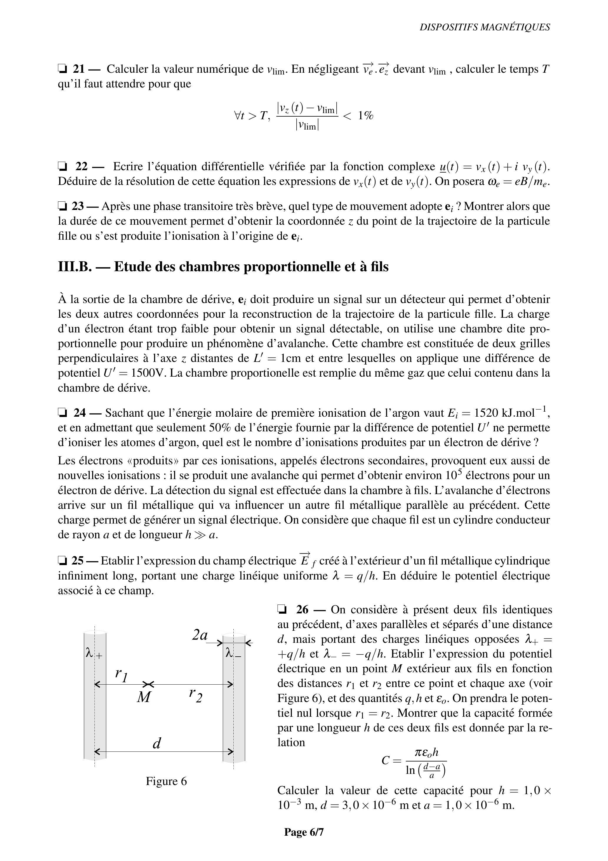 28 - Comment doit-on choisir pour que le temps soit négligeable devant les temps caractéristiques des phénomènes étudiés ? Expliquer la nécessité de provoquer une avalanche à partir d'un électron de dérive. Comment un tel dispositif permet-il d'identifer les coordonnées et de la particule fille au moment de l'ionisation de l'argon dans la chambre de dérive ?