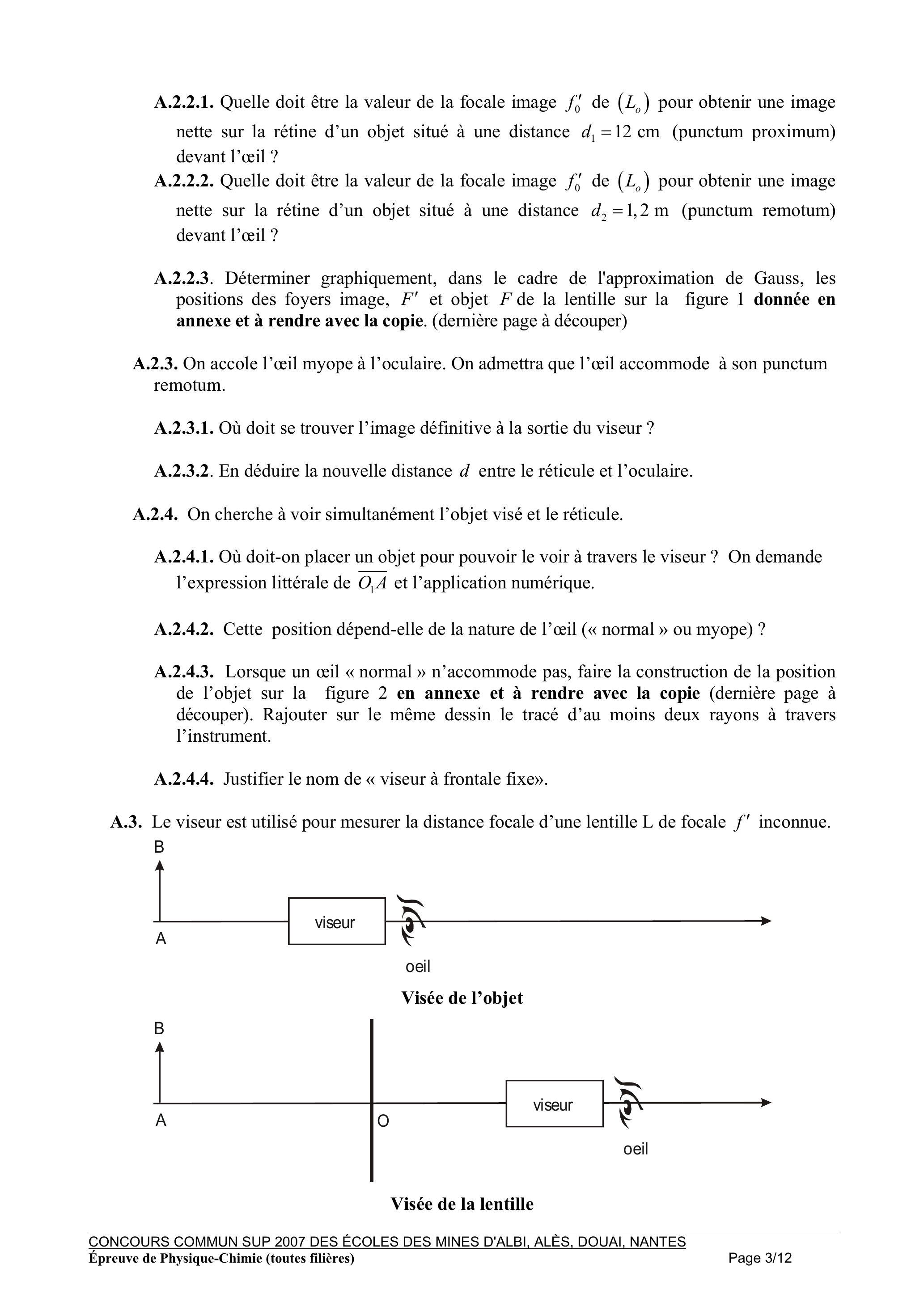 A.2.3. On accole l'œil myope à l'oculaire. On admettra que l'œil accommode à son punctum remotum.