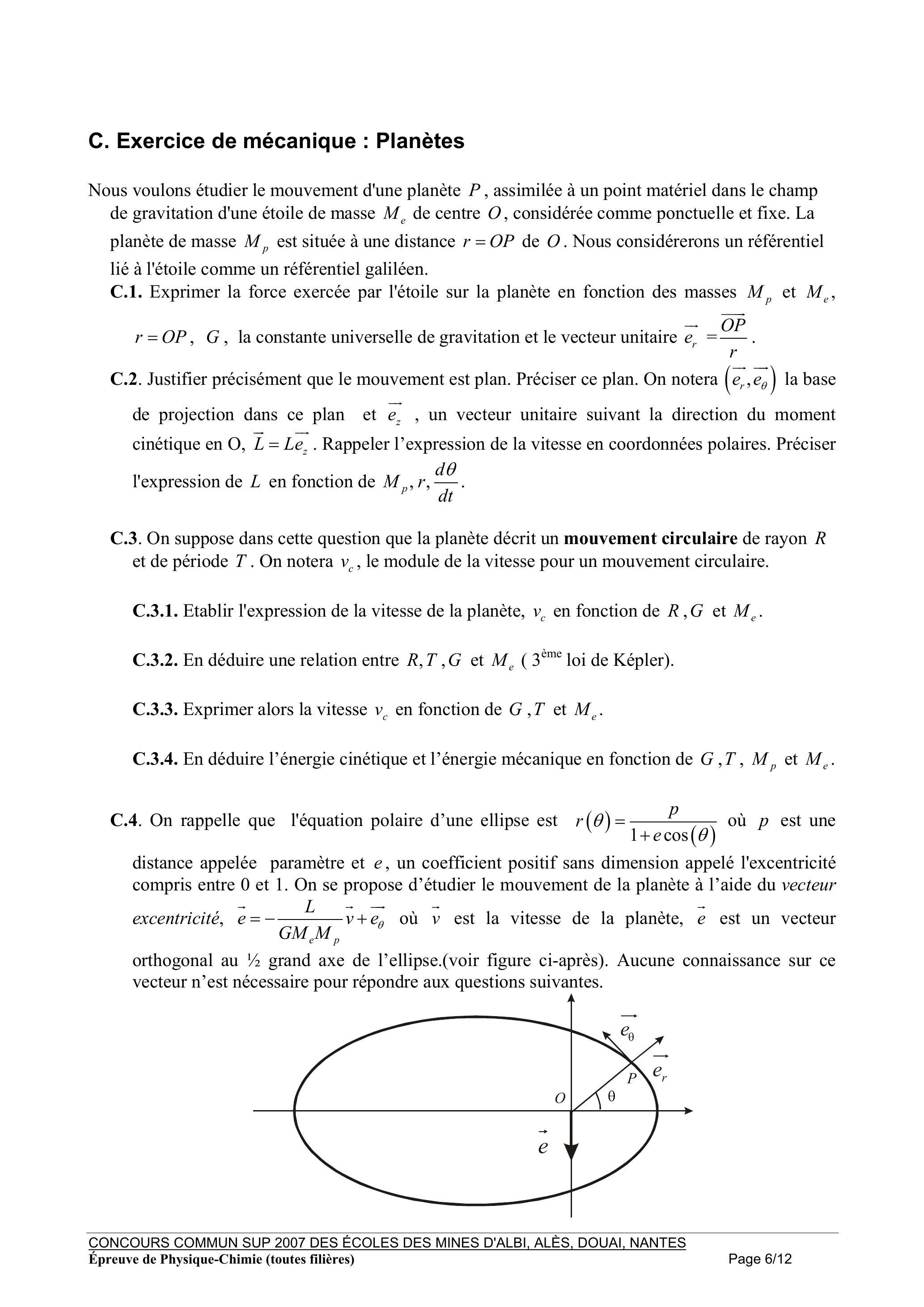 C. Exercice de mécanique : Planètes