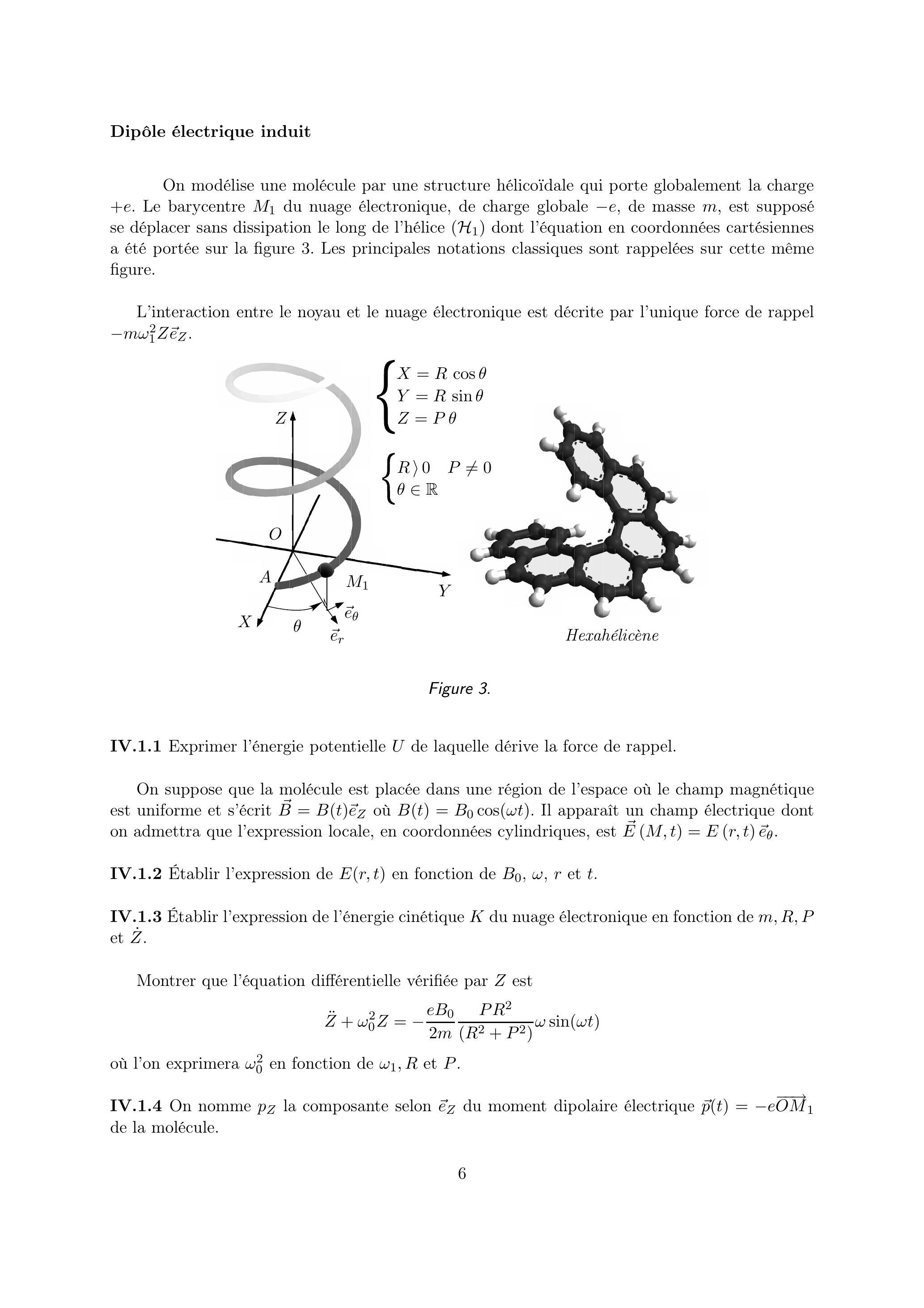 Le pouvoir rotatoire n'existe que pour des molécules possédant une certaine dissymétrie. Sur un modèle de molécules ayant une géométrie hélicoïdale, on se propose de mettre en évidence l'apparition de dipôles électrique et magnétique induits. Les composés organiques de la famille des hélicènes possèdent une telle forme : à titre d'information on a représenté sur la partie droite de la figure 3, l'hexahélicène.