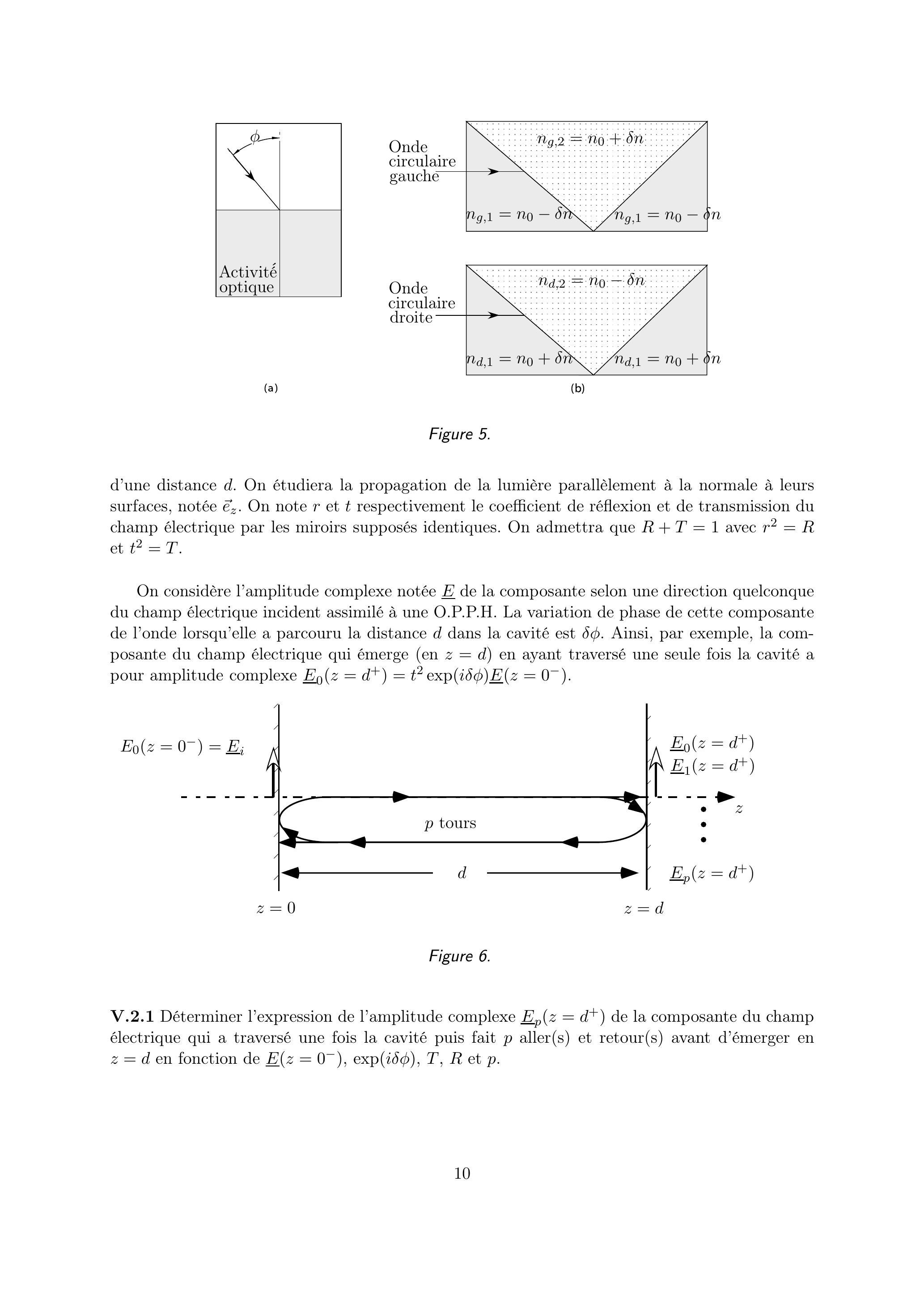 L'O.P.P.H. d'amplitude ( ) pénètre dans un milieu optiquement actif situé entre et . On note :