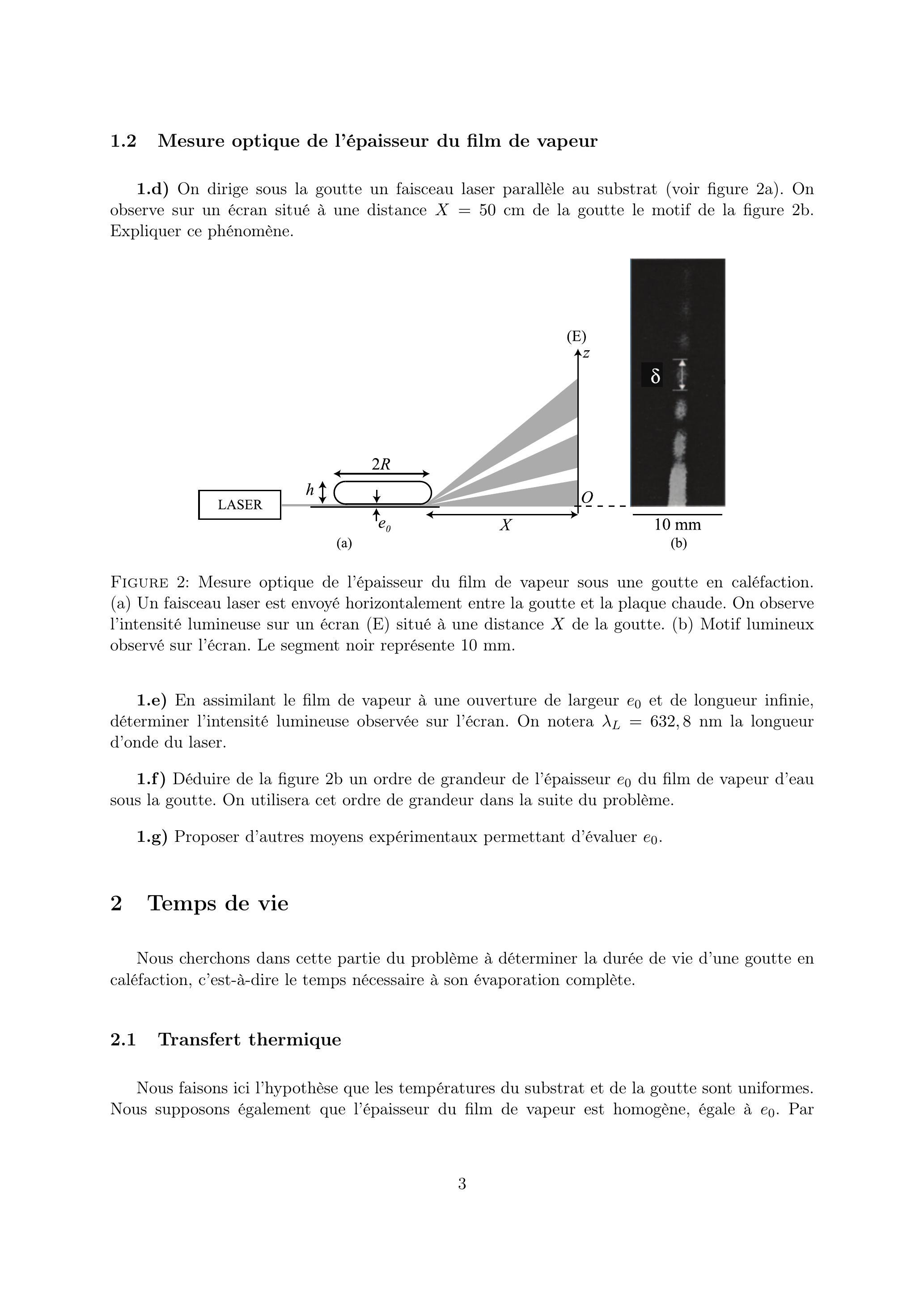1.f) Déduire de la figure 2 b un ordre de grandeur de l'épaisseur du film de vapeur d'eau sous la goutte. On utilisera cet ordre de grandeur dans la suite du problème.