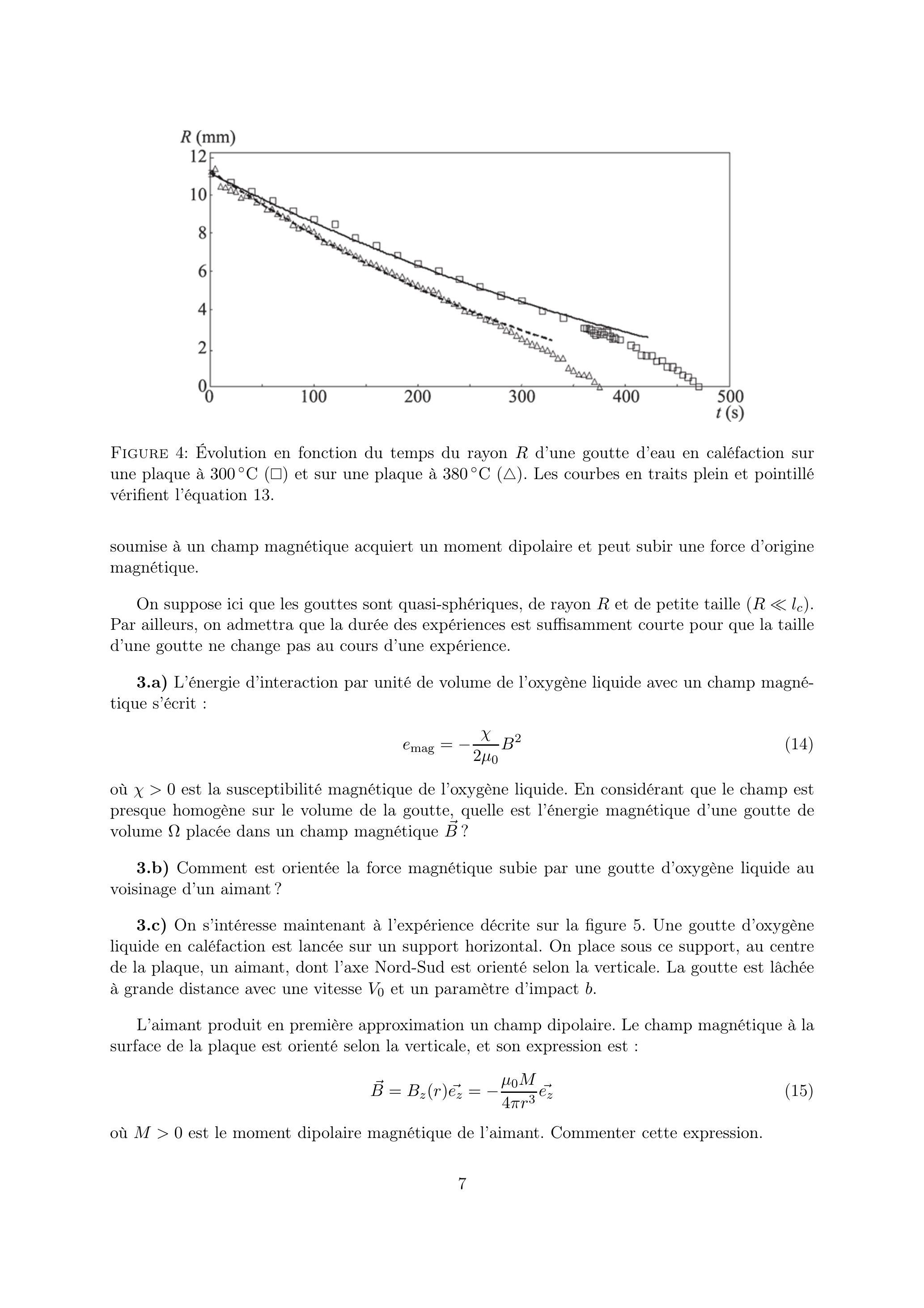 Dans ce problème, nous proposons d'expliquer l'épaisseur du film de vapeur, d'étudier les écoulements en son sein, et de comprendre les trajectoires remarquables de gouttes d'oxygène liquide caléfiées sous l'influence d'un champ magnétique.
