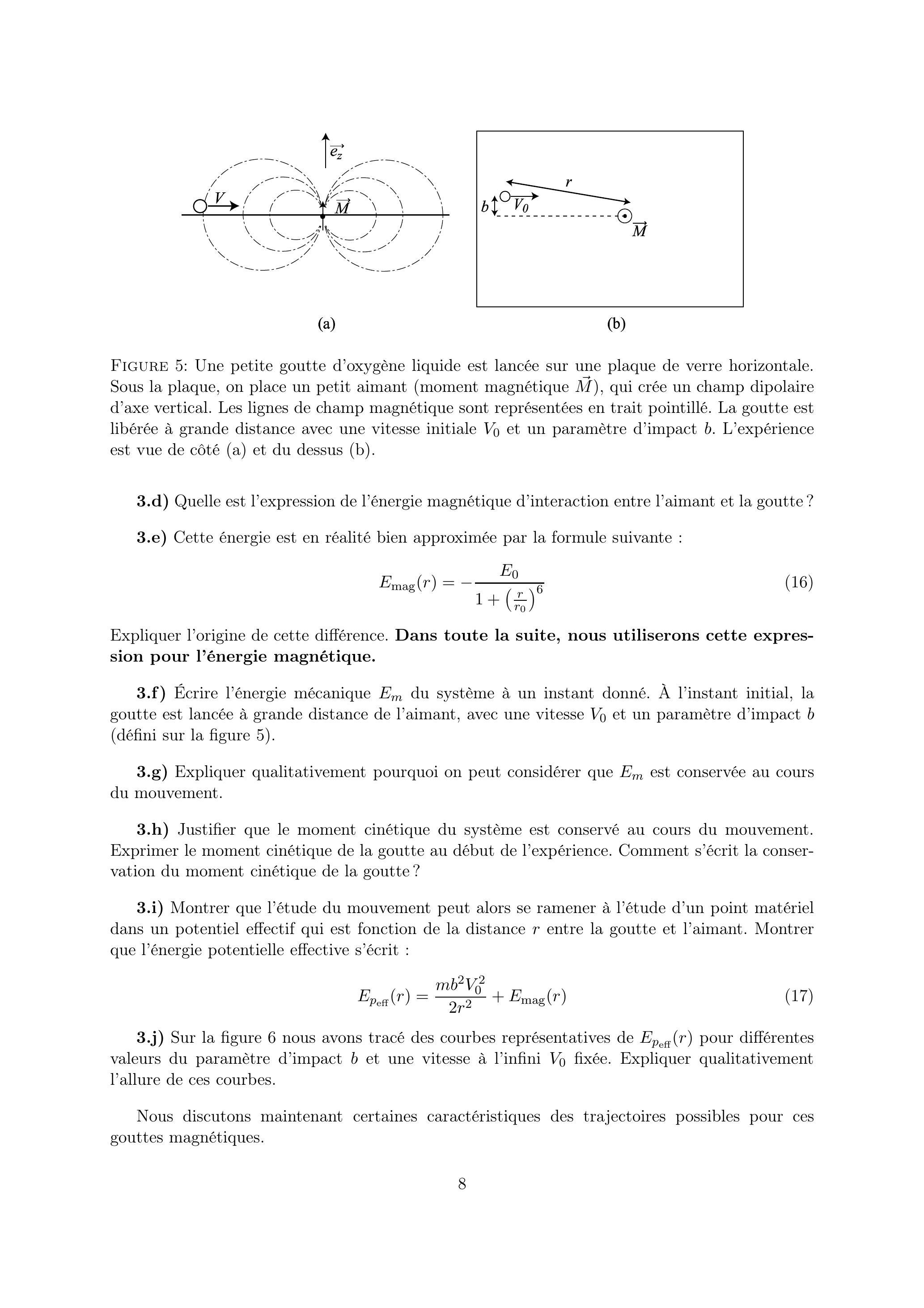 3.i) Montrer que l'étude du mouvement peut alors se ramener à l'étude d'un point matériel dans un potentiel effectif qui est fonction de la distance entre la goutte et l'aimant. Montrer que l'énergie potentielle effective s'écrit :