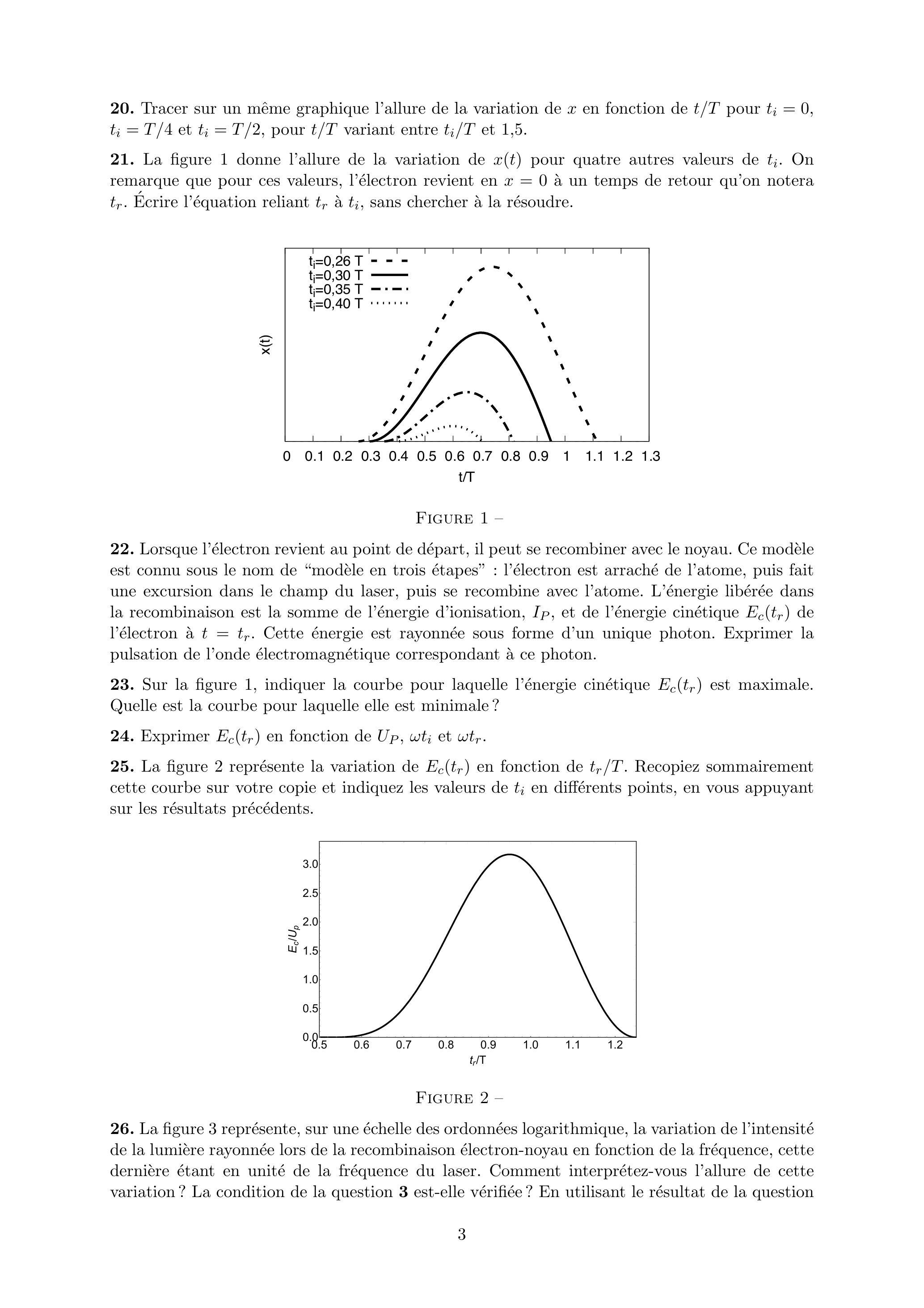 , et de l'énergie cinétique de l'électron à . Cette énergie est rayonnée sous forme d'un unique photon. Exprimer la pulsation de l'onde électromagnétique correspondant à ce photon. - Sur la figure 1, indiquer la courbe pour laquelle l'énergie cinétique