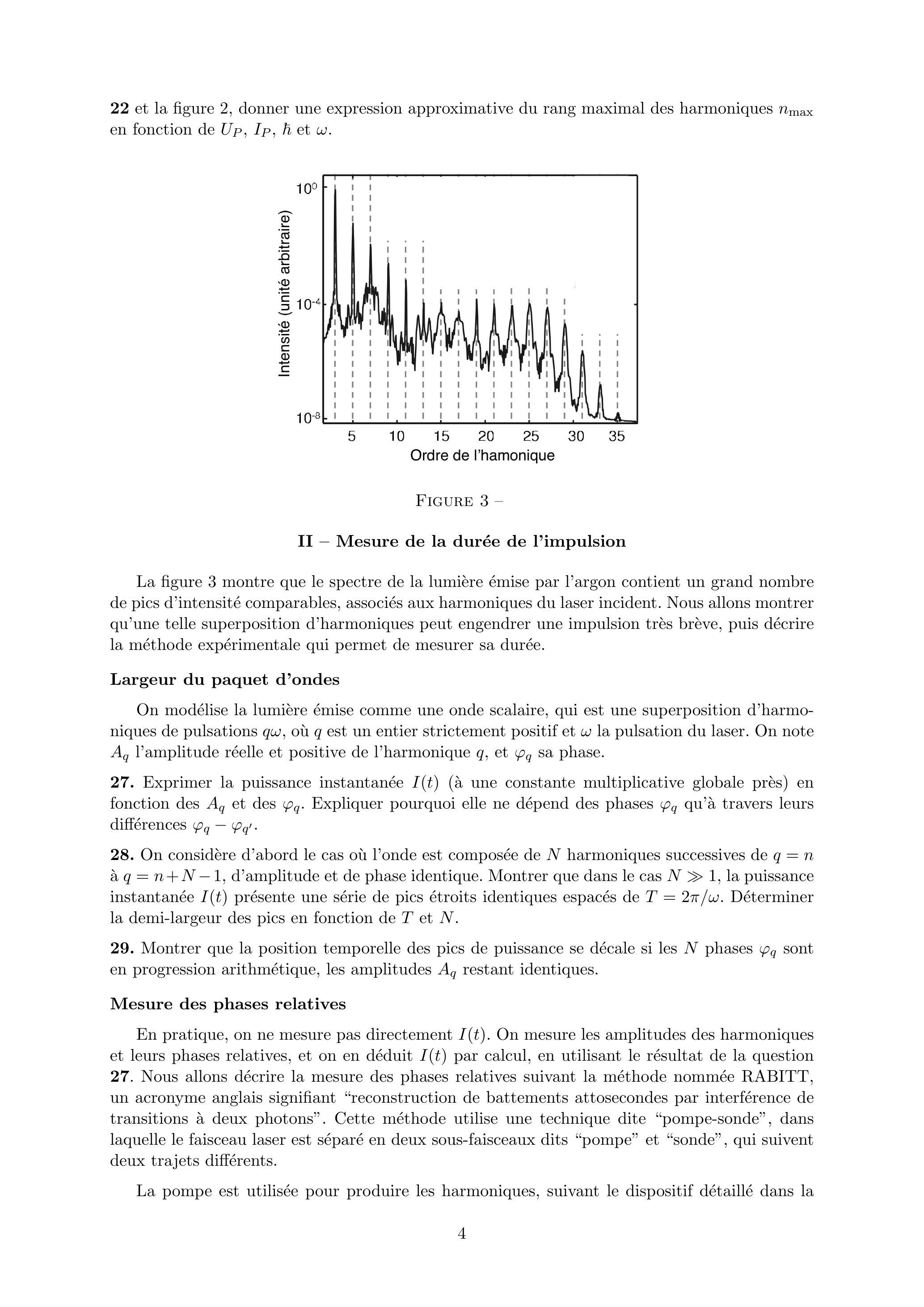 31. D'après la figure 3 , le faisceau d'harmoniques ne comprend que les harmoniques impaires, et deux pics successifs
