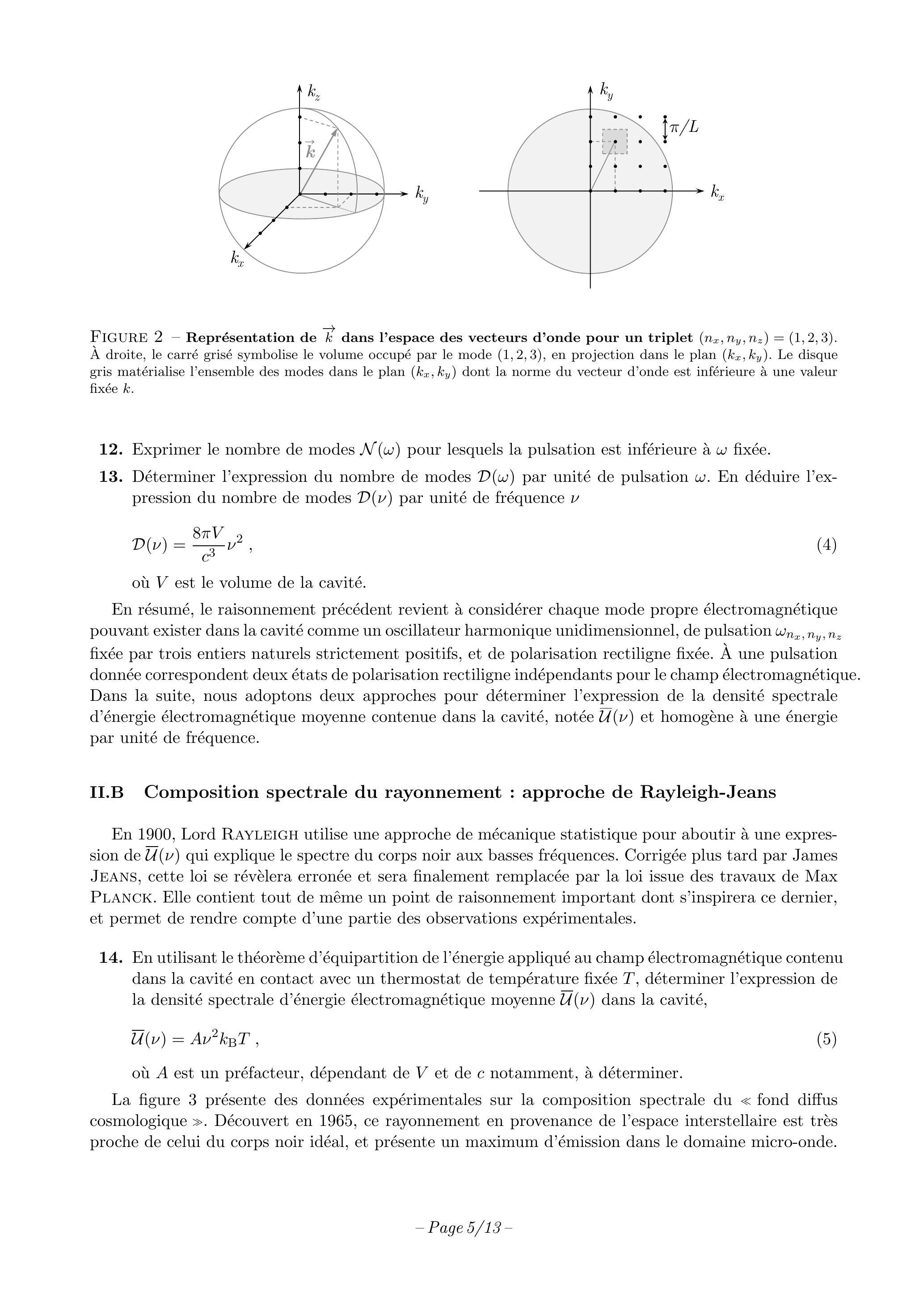 II.B Composition spectrale du rayonnement : approche de Rayleigh-Jeans