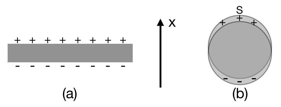 - La densité surfacique de charges est créée par une translation globale des électrons par rapport aux ions, dans une direction perpendiculaire à la plaque. Exprimer