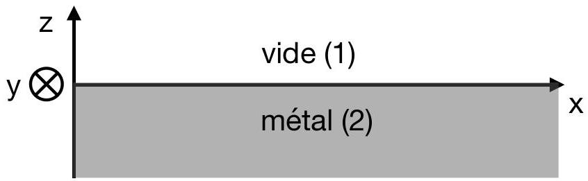 Nous allons maintenant étudier la propagation d'une onde électromagnétique près de la surface d'un métal. On choisit un système de coordonnées cartésiennes tel que cette surface soit le plan