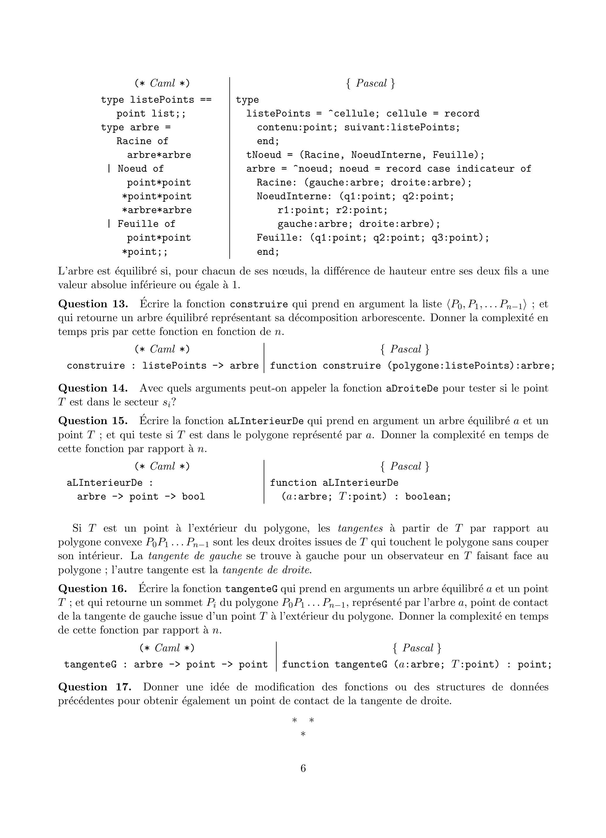 tNoeud = (Racine, NoeudInterne, Feuille); arbre = ^noeud; noeud = record case indicateur of Racine: (gauche:arbre; droite:arbre); NoeudInterne: (q1:point; q2:point; r1:point; r2:point; gauche:arbre; droite:arbre); Feuille: (q1:point; q2:point; q3:point); end;