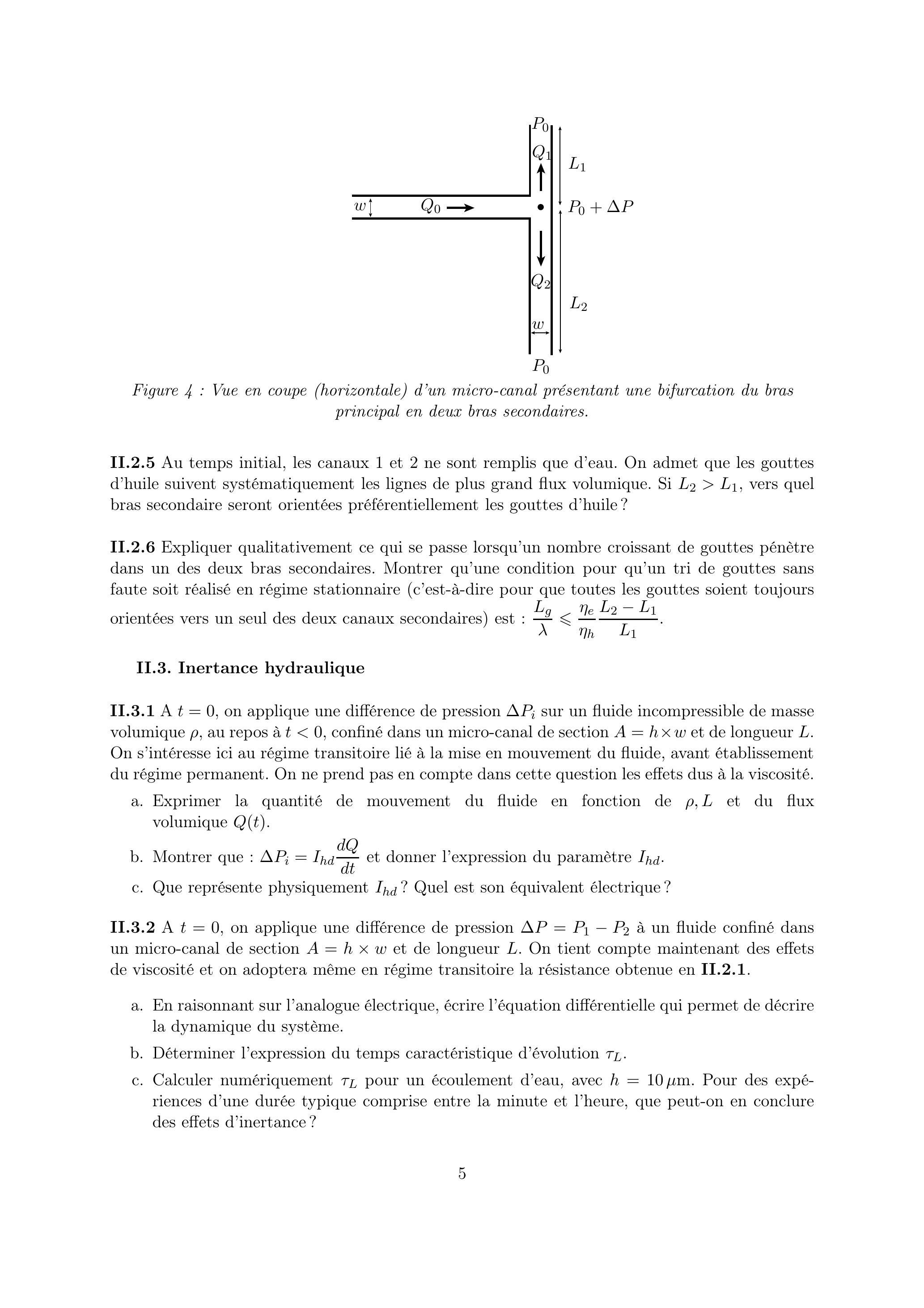 II.2.6 Expliquer qualitativement ce qui se passe lorsqu'un nombre croissant de gouttes pénètre dans un des deux bras secondaires. Montrer qu'une condition pour qu'un tri de gouttes sans faute soit réalisé en régime stationnaire (c'est-à-dire pour que toutes les gouttes soient toujours orientées vers un seul des deux canaux secondaires) est : .