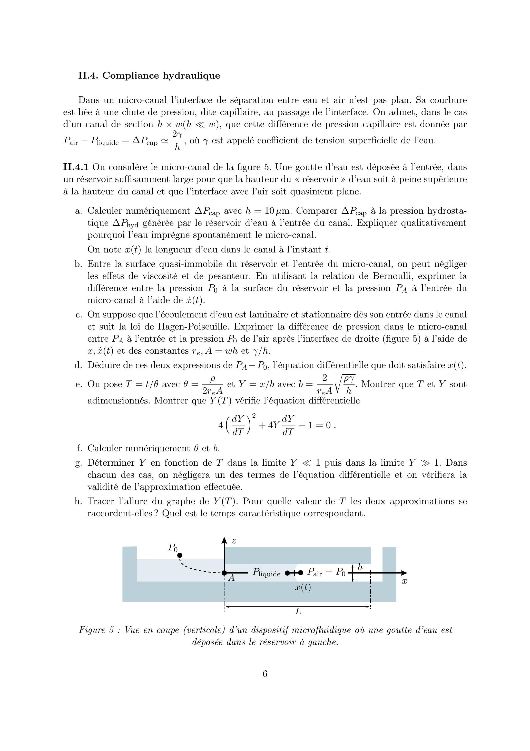 c. On suppose que l'écoulement d'eau est laminaire et stationnaire dès son entrée dans le canal et suit la loi de Hagen-Poiseuille. Exprimer la différence de pression dans le micro-canal entre à l'entrée et la pression de l'air après l'interface de droite (figure 5) à l'aide de et des constantes et .