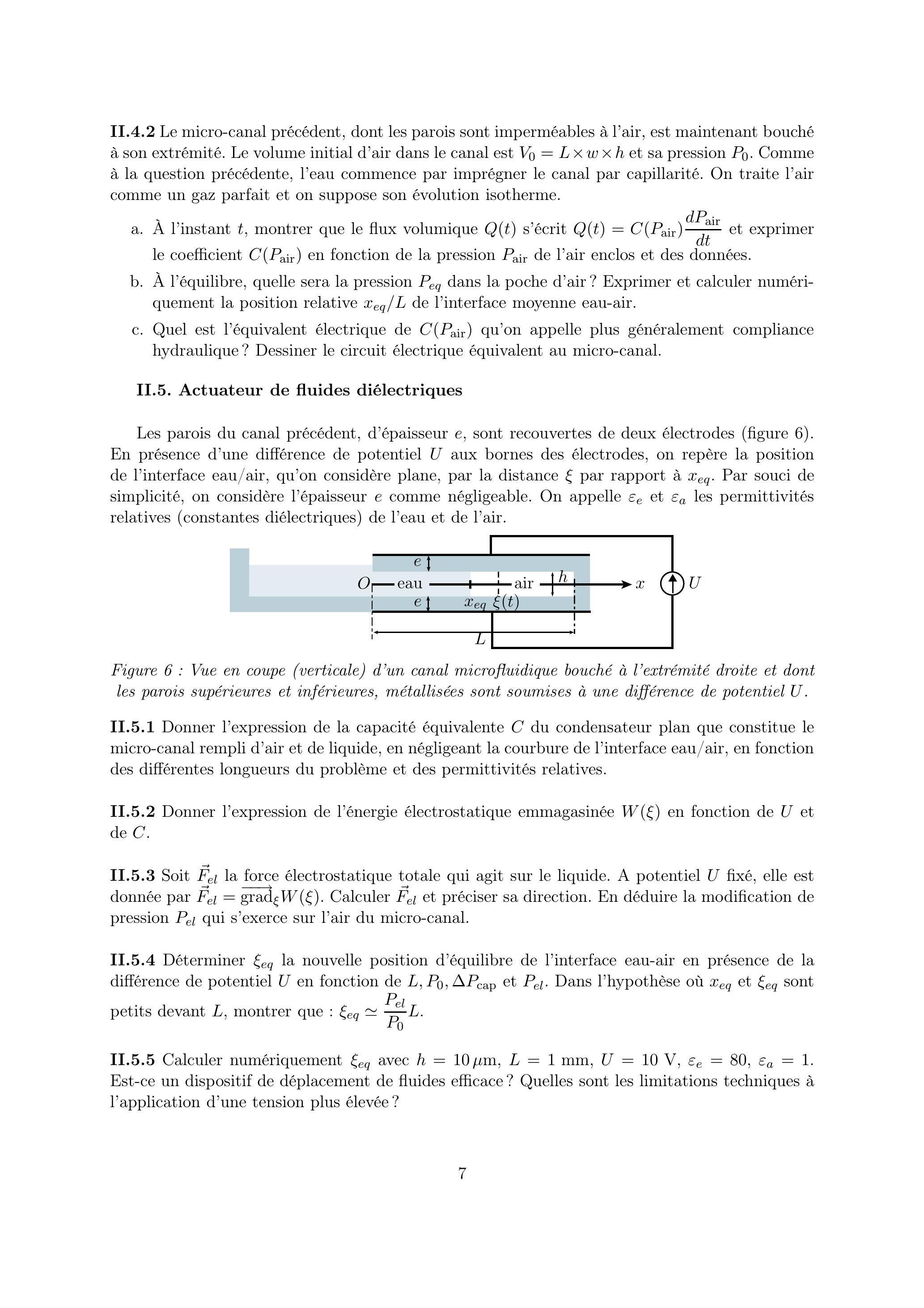 II.4.2 Le micro-canal précédent, dont les parois sont imperméables à l'air, est maintenant bouché à son extrémité. Le volume initial d'air dans le canal est et sa pression . Comme à la question précédente, l'eau commence par imprégner le canal par capillarité. On traite l'air comme un gaz parfait et on suppose son évolution isotherme.