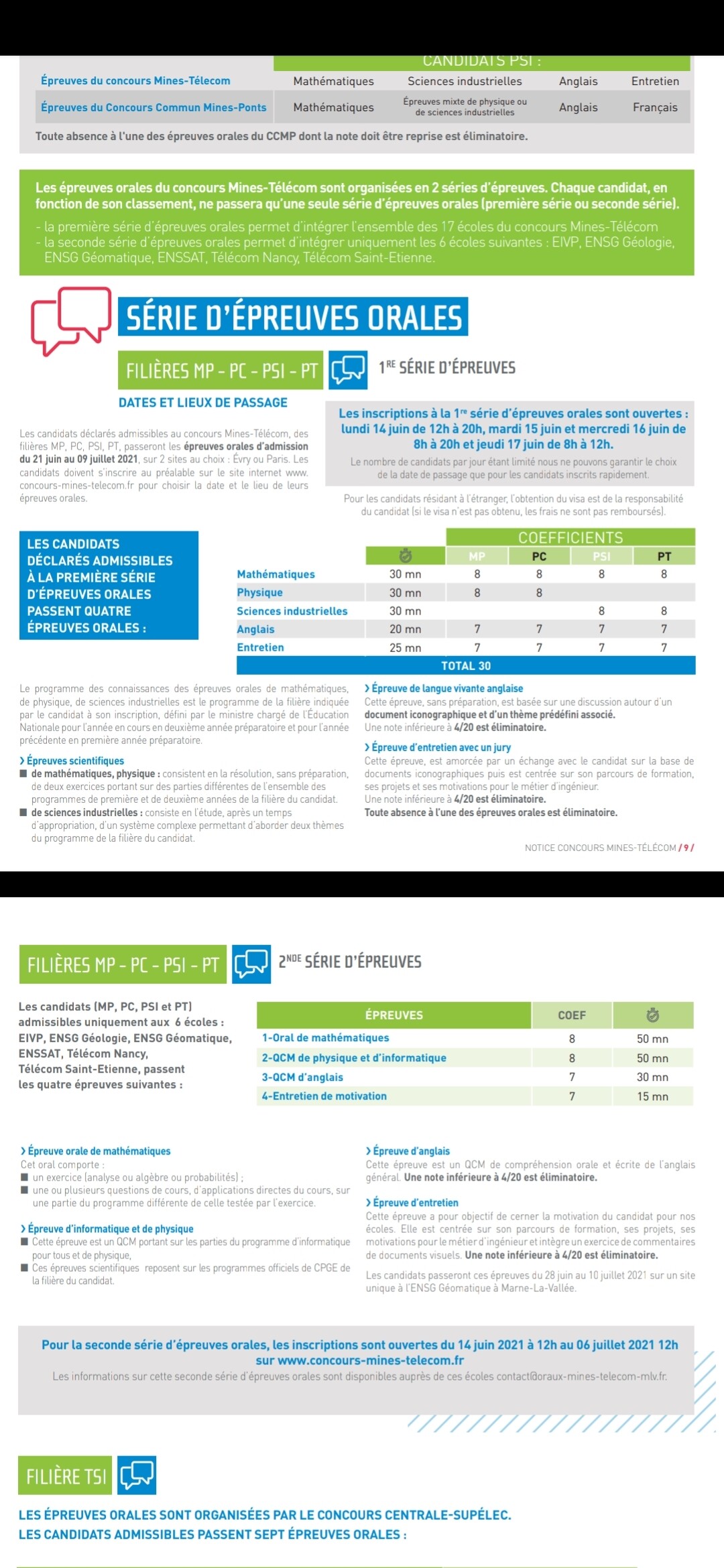 Bonjour, comment est ce que les oraux mines Télécom se passent ? Enfin sur combien de jours et où ?