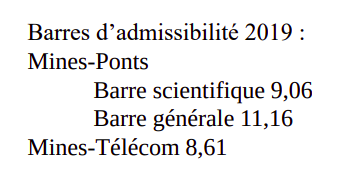concours Mines Telecom : Barre générale : 276,5