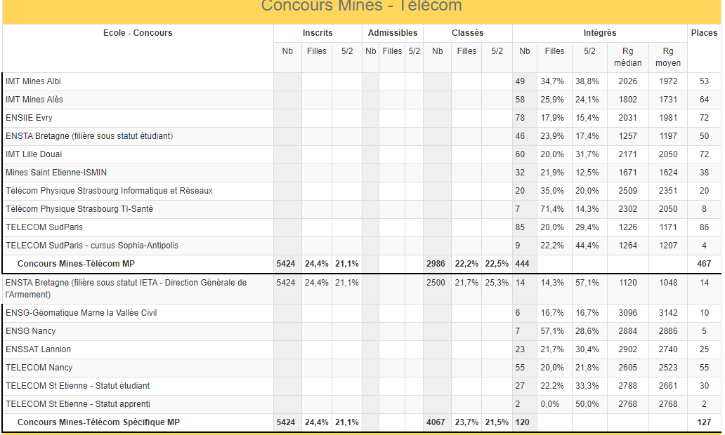 ceux d’en haut sont mines telecom et d’en bas sont mines telecom specifique mp